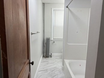 Discover modern living in this spacious 3-bed, 1-bath apartment featuring a chic open floor plan, refinished hardwood floors, and freshly painted walls filled with natural light. The large eat-in kitchen is equipped with brand-new stainless steel appliances, including refrigerator, oven, microwave, washer, and dryer. Ample storage is provided with deep closets and plenty of cabinetry, while a decorative fireplace and Roman columns add timeless charm to the living area. The updated bathroom offers sleek fixtures and finishes, and residents can enjoy the shared outdoor space as the warmer months arrive. Centrally located, this home blends style, convenience, and comfort—schedule a viewing today!