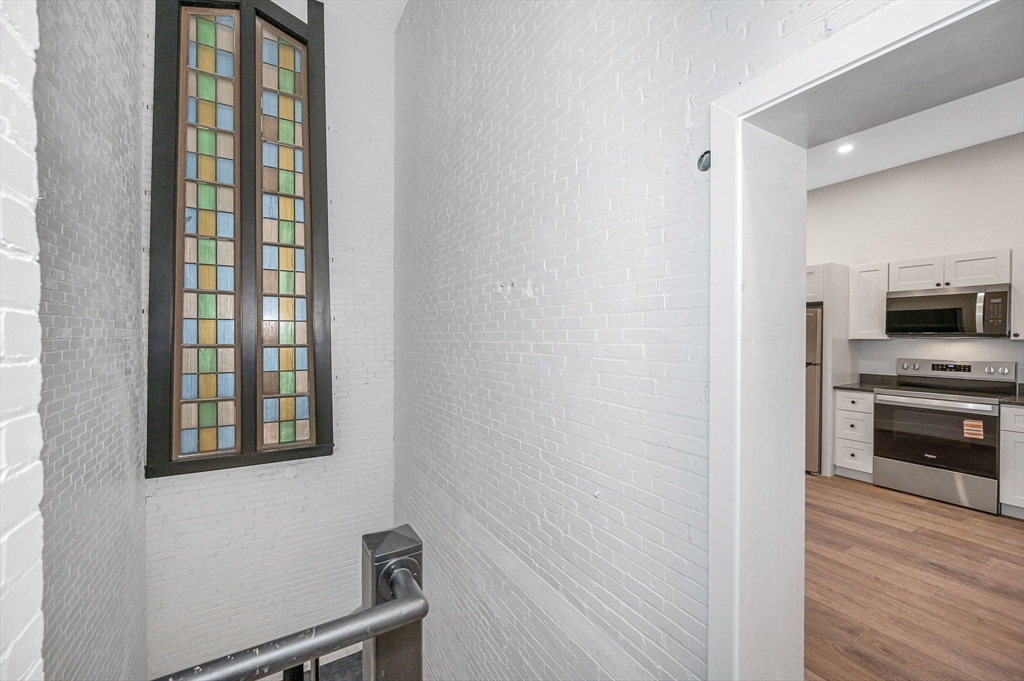 Welcome to 241 W Sixth Street - the Residences at St. Louis an amazing transformation of a historic church into a collection of beautiful residential units. This masterful redevelopment blends timeless architecture with modern sophistication, offering a modern and elevated living experience. This one bedroom unit offers two floors of living space, exposed brick, original stain glass windows, open concept layout, modern kitchen and bath, great closet space, in-unit laundry, central AC, secure access, and off-street parking in the gated parking lot. All applicants must have good credit, landlord references and proof of income. Tours available by appointment - schedule now so you don't miss the rare opportunity to live in a building with history, character, and architectural distinction.