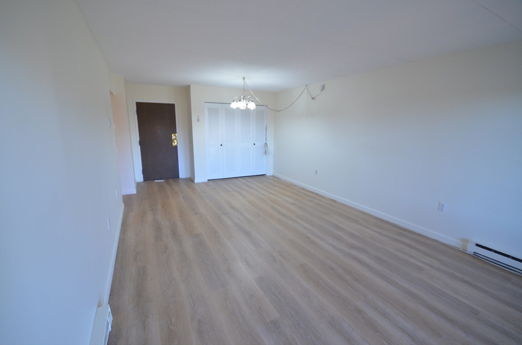 This is a large one bedroom unit on the fifth floor of a high-rise condominium complex, with newly laid flooring, a living room/dining room combo, with a double closet. The Bedroom has two double closets and easy access to the bathroom and double closet linen closet. you also have a slider out to the screened balcony. Two elevators, access to an outdoor pool, indoor heated pool, men's and women's sauna, and a solarium, which could be reserved for special occasions. Onsite maintenance, snow removal, and professional landscaping. Plenty of guest parking, BBQ area with tables. Outdoor pool is seasonal, indoor pool is 365 days access. No utilities are included except water. Individual thermostats for each room, and central air. Trash Shute on every floor, and Washer dryer combo included. Wholefoods, Shaws supermarkets, and many excellent restaurants and shops to enjoy. Access to route 1 & 93, 5 minute drives. Commuter rail 1/2 mile & Oak Grove "T" station by bus #104,134,136,137.