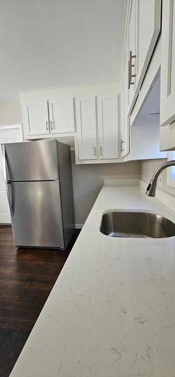 Welcome Home. This inviting 3-bedroom, 1-bath apartment is set among well-maintained homes and offers convenient off-street parking. The kitchen serves as a culinary centerpiece with quartz countertops and shaker cabinets, blending timeless style with modern functionality for daily living and entertaining. Enjoy preparing meals in this elegant space where sleek quartz surfaces pair beautifully with classic cabinetry, and cleanup is easy with a dishwasher or a deep stainless-steel sink for handwashing. The first-floor layout includes three comfortable bedrooms and a full bath, ideal for relaxed living. A spacious living room with gleaming hardwood floors and a large picture window fills the home with natural light and neighborhood views. With stainless steel appliances and proximity to Webster Lake, shopping, schools, and major routes, this home combines charm, convenience, and enduring appeal.