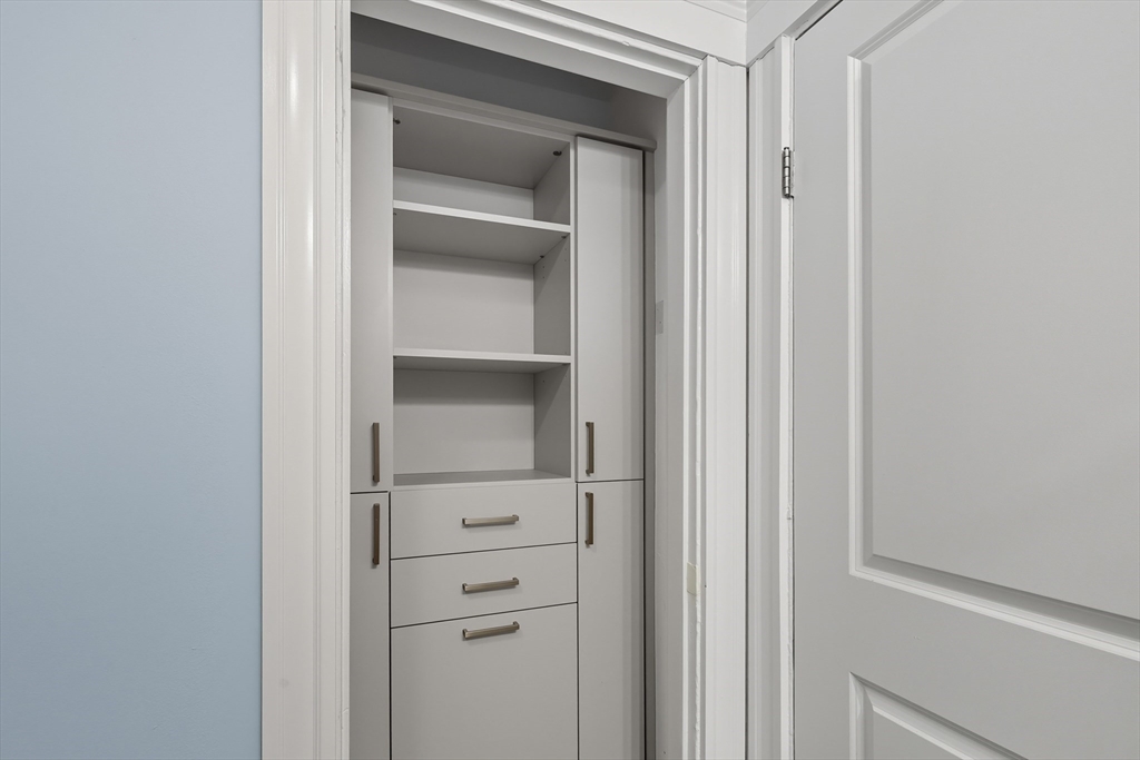 This elegant and modern raised first-floor 3-bedroom, 2-bathroom condo is nestled on a wide Dorchester side street just 0.1 mi from Shawmut Red Line MBTA station. The open concept layout is ideal for entertaining, with the living room and kitchen seamlessly flowing together and providing direct access to an oversized back deck, perfect for al fresco dining or relaxing in a tranquil setting. The kitchen boasts granite countertops and stainless-steel appliances, making it both stylish and functional. All three bedrooms, along with the bathroom and hallway closets, feature California Closets custom buildouts, offering exceptional storage solutions. Wood floors add warmth and elegance, complemented by central air for year-round comfort. Adding a touch of mystery to daily living, a hidden Murphy Door bookshelf leads to your second bathroom. Additional features include private basement storage and a private washer and dryer, enhancing convenience and ease in this exceptional home.