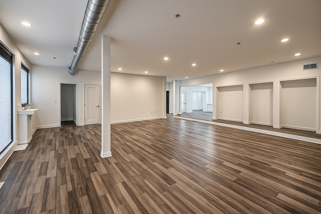 Live, work, and thrive in one incredible space! This unique 3,000+ sq. ft., three-level loft-style condo in Downtown Lowell offers both residential luxury and commercial flexibility. The high-visibility ground level is ideal for office, studio, or retail use with an open layout and half bath. Upstairs, enjoy soaring ceilings, floor-to-ceiling windows, hardwood floors, and an electric fireplace. The modern kitchen features white shaker cabinets, custom tile backsplash, stainless steel appliances, and a built-in wine cooler. The top floor boasts a serene primary suite with a tiled walk-in shower, plus a second bedroom and full bath. The wide open lower level with half bath offers endless possibilities. With dual access from Prescott Street and the main building, plus a common rooftop deck, this one-of-a-kind property is just minutes from UMass Lowell, the Commuter Rail, shops, restaurants, and all the attractions of Downtown Lowell!