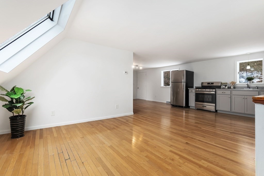 Perched above Middleton Pond in a serene setting with beautiful nature views, this updated 1 bedroom, 1 bath apartment is available now in Middleton. This apartment features an open concept living room & kitchen with stainless steel appliances as well as office/bonus room, skylights and hardwood floors throughout! There is a small stone patio out back where you can enjoy dining outside in the summer or just watching all the nature right out your back door! Full size washer & dryer are available in the garage space downstairs. Water, heat, electric included. Tenant pays cable/internet. No Pets. 1 parking spot in the driveway (no garage parking). The unit is located above a 3 car garage on an owner occupied single family property. Easy access to routes 114, 95, 128, and US1. Do not disturb property owner.