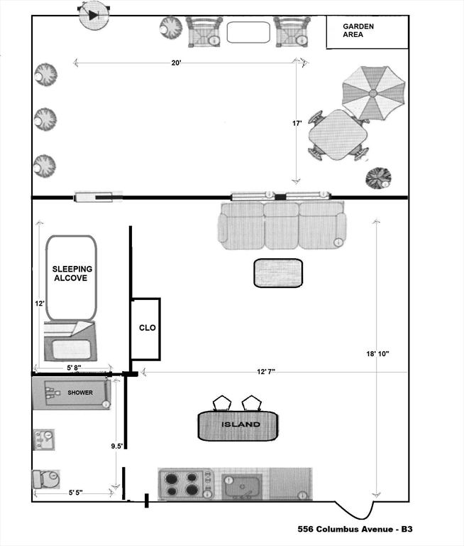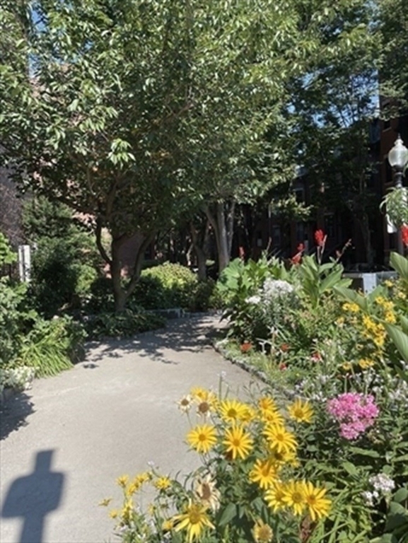 Sunny Private Backyard Oasis – South End Gem--Welcome to your private fenced outdoor paradise in the heart of the South End! This exclusive-furnished Southwest-facing patio is nestled beneath a grove of mature trees - ideal for grilling, lounging, or hosting unforgettable gatherings. There’s ample space -- furnished with table and chairs, but plenty of room for sectional, hammocks, and more if you'd like to add to existing pieces. This rare backyard retreat is reserved solely for this unit. Step inside to a bright, open-concept furnished living, dining, and kitchen area framed by a full-glass door that brings the outdoors in. Enjoy high ceilings, warm hardwood floors throughout, and a modern, oversized tile shower in the beautifully updated bath. A cozy side sleeping alcove and on-site laundry add to the convenience. This is the sunniest terrace patio in the South End - an entertainer’s dream and a true urban escape. Can be rented unfurnished as well.