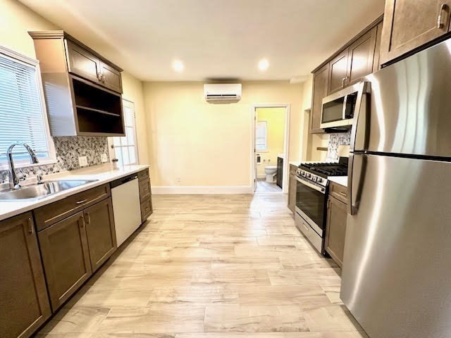 JANUARY 1st LEASE START: Renovated FIRST floor 1 bed 1 bath apartment in downtown Waltham Moody St location (non owner occupied house). This is a 3 family house w/ 1 unit above and 1 unit beside this one. Apartment was all done over 2 years ago. Modern eat-in kitchen w/ tiled floor, QUARTZ counters, soft closing cabinets & STAINLESS STEEL appliances including dishwasher, microwave, fridge & gas oven. Unit has hardwood floors, updated electrical, plumbing, lighting, window blinds. PET FRIENDLY PROPERTY. 3 separate electric heat pumps for central heating & COOLING. Parking in driveway is permitted BUT it is shared with 1 other apartment (it is tandem style parking). On street parking WITHOUT a permit is allowed. Coin-operated laundry machines in the basement for use. Great downtown location close to shops, restaurants, the Charles River, Common and the Commuter Rail. Pictures are from prior to the current tenant moving in. 1st, last and sec deposit due upfront to move in.