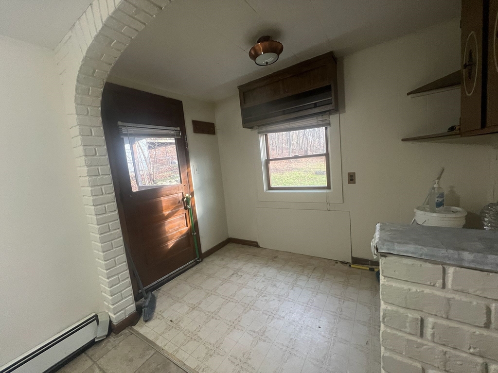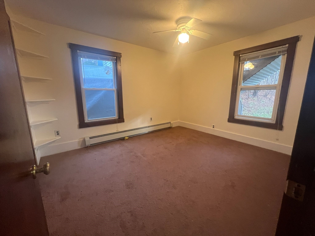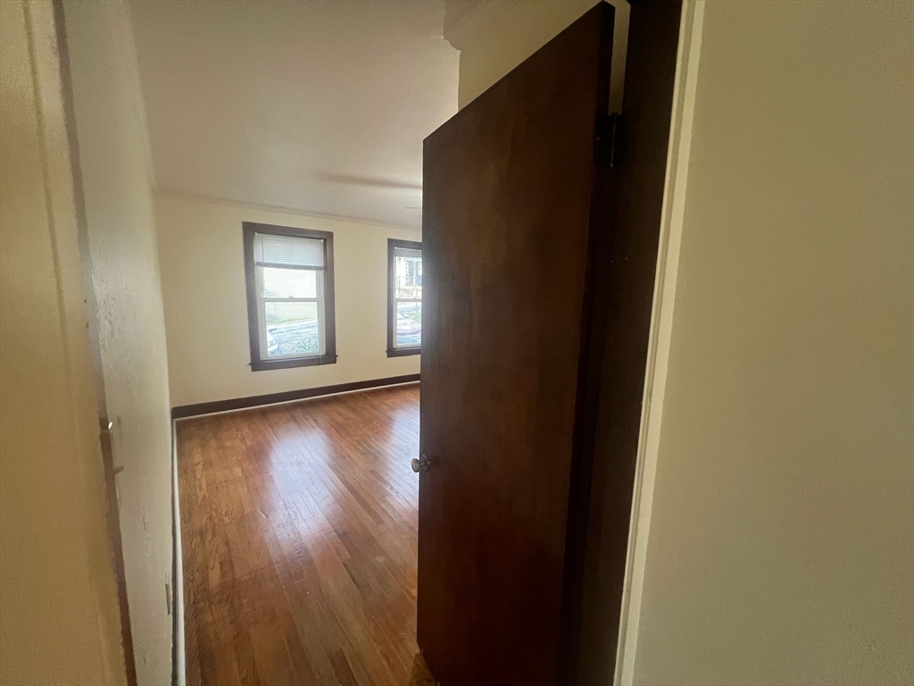 Spacious first-floor 3-bedroom apartment offering two traditional bedrooms plus a third bedroom without a closet, featuring hardwood floors throughout most rooms, a large sun-filled living room, an oversized eat-in kitchen with ample cabinets and gas cooking, a full bath with tub/shower and extended vanity, in-unit washer and dryer hookups, a rear mudroom leading to a private covered porch overlooking the yard, fresh interior paint, gas heat, off-street parking, and a convenient location on a quiet side street close to Spencer center, shops, and Route 9, available for immediate occupancy.
