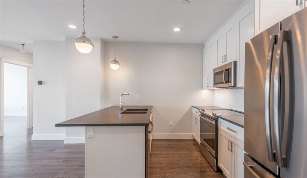 Breathtaking city views from this one of a kind top floor of unit. Over 900 square feet of modern luxury living. Photos featured in the listing are of various units within the building. Each unit is slightly different from one another** Welcome to The Commons at Prospect Hill: new apartment community featuring all of the amenities you would expect from a Downtown Luxury Building. Washer and Dryer in-unit, stainless steel appliances, hardwood floors throughout, smart thermostat system and high-end finishes. Building amenities include: Package service, Gym, Community Room and Conference Room. This elevator building offers assigned garage parking spaces for rent. Close to Boston, Charlestown, Cambridge and Medford, and offering proximity to Tufts University, MIT and Harvard via numerous transportation options. Served by the Red Line and Orange Line of Boston's MBTA system, downtown Boston is easily reachable via commuter rail or the many bus routes that also operate in Somerville. Lots o
