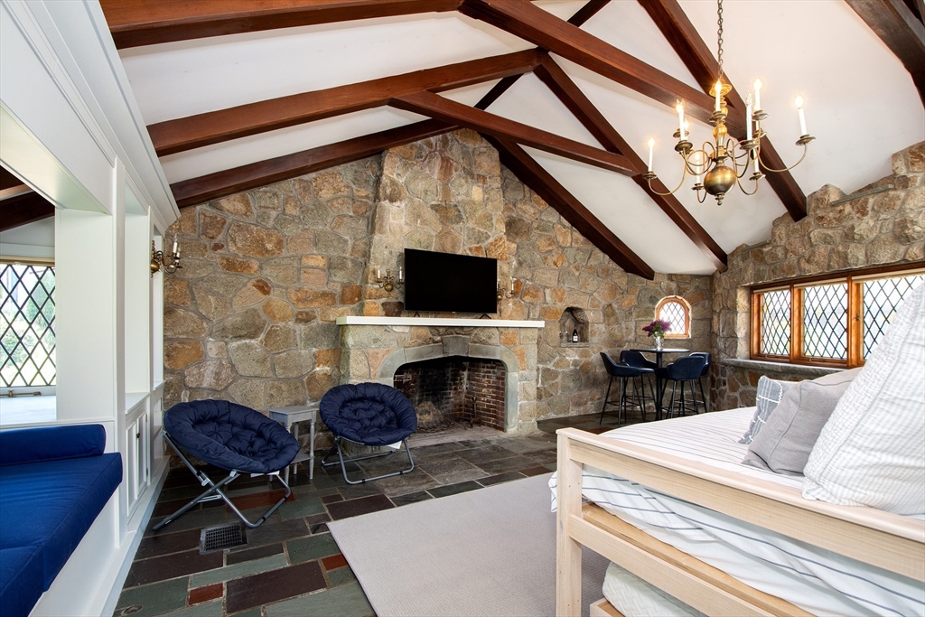 AUG 2026 - Enchanting stone & wood ranch style home w/ ocean views & rights to a private beach. This home just went through some nice renovations & was just recently furnished w/ all new furniture. This home consists of 4 beds, a cozy family room, a great room w/ a great work space, lg kitchen, DR & 4 full baths. The primary bed has a king size bed, a wall of closets, a large full bath w/ a soaking tub & shower. The "2nd primary bedroom" is located on the 2nd floor. There is a king bed, a brand new bathroom, desk & walk in closet. The 3rd bedroom is in the Chapel Room which has just undergone a full reno. There are 2 queen beds w/ twin sized trundles as well as built in twin bunks, desk & brand new bath. The 4th bedroom has a twin bed w/ a twin trundle, a desk & a full bath. Outside, the courtyard is a wonderful space for entertaining. There is seating for 12 to dine, a gas fire pit, Adirondack chairs, chaise lounges and a large grill. Walk to private beach