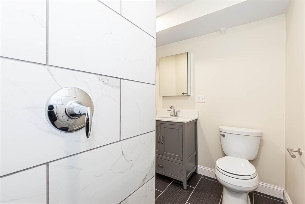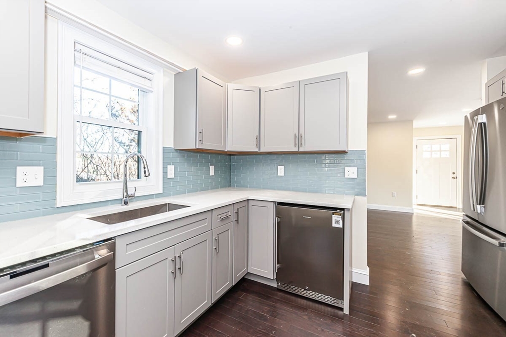This newer construction single-family home in Waltham features five bedrooms and five full bathrooms. The property includes hardwood floors, granite countertops, and stainless steel appliances, along with high-end finishes throughout. Outdoor space includes three separate decks and a patio. Off-street parking on dedicated driveway is available.