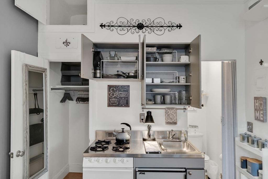 Charming, fully furnished studio in a classic Back Bay brownstone located directly across from the Commonwealth Mall. Unit 8 is reached by one flight of stairs or by elevator from an elegant lobby with keyless LATCH entry. This efficiently designed home features 10’+ ceilings, wood floors, a renovated marble-tiled bathroom with a modern shower, and a kitchenette with a 4-burner gas range, mini refrigerator/freezer, and sink. A great option for a professional or anyone seeking a convenient in-town residence in one of Boston’s most desirable neighborhoods. Close to Newbury Street, the Public Garden, Prudential Center, and MBTA access. Offered fully furnished with bed, mattress, linens, towels, table and chairs, pots and pans, window AC, and modem. Move-in ready as shown. Heat and hot water included; tenant pays electricity, gas for cooking, and cable/wifi.