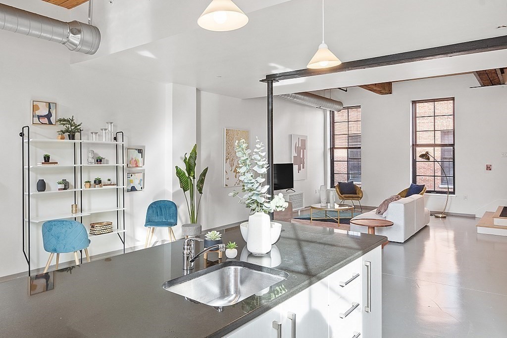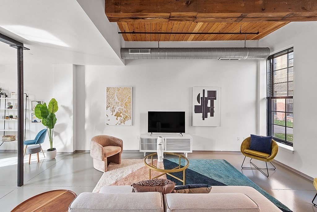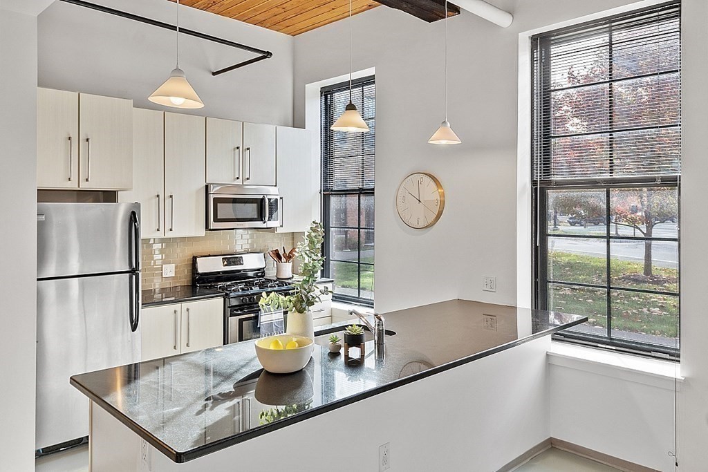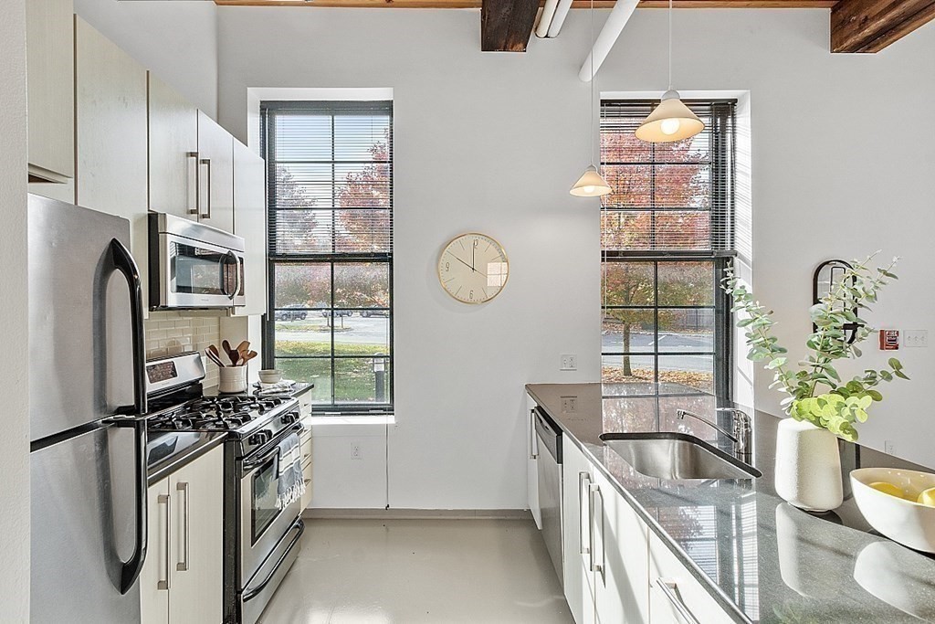 Cable Mills consists of three former industrial mill buildings restored into beautiful homes featuring 12ft to 16ft tall ceilings, massive windows, and exposed brick and beam, steel and timber throughout, stainless steel appliances, granite countertops, gas-fired ranges, generous closets and in home laundry. Cable Mills offers stunning views of the famed ‘Purple Mountains’ and the rolling Green River. Homes are one, two or three bedrooms in single level flats, lofts and townhome styles totaling 61 residences. Outdoor spaces including the Outdoor Living Room with a fire pit, grills and seating along the river walk. The main building offers a community lounge, fitness center, interior bike storage, package delivery room, dog wash and on-site professional management. Approximately half a mile to shopping, dining, Williams College and one of the top collegiate golf courses and in close proximity skiing, hiking, rafting, museums and all the Berkshires has to offer. Photos of similar home.