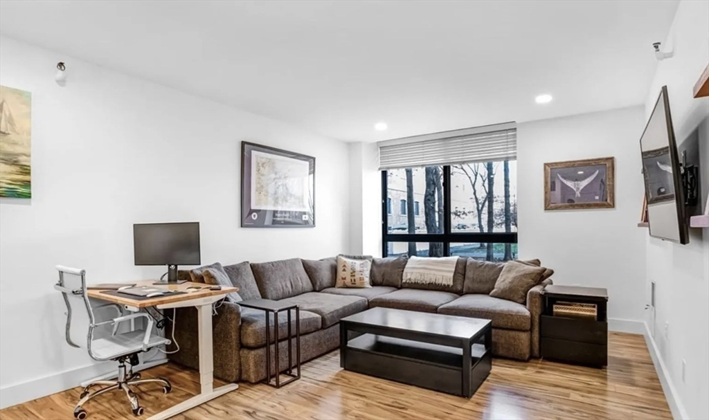 Pristine 2 Bedroom/2 Bath with Parking! Step into this spacious open concept living and dining room with amazing natural light! Floor-to-ceiling windowsill every room with views of the beautifully landscaped courtyard. Newly renovated kitchen featuring white quartz countertops, stainless steel appliances and an ample amount of counter space. Large walk in closet big enough for extra storage. Laminate wood floors spill all throughout this condo, even in the bedrooms. Primary bedroom has an ensuite bathroom and able to fit a king bed. Parris Landing is a luxury condo that has 24 hour security, state of the art gym, community room, heated pool and gas grills. 1 mile form downtown Boston, and easy access to all major highways. City living at is best!
