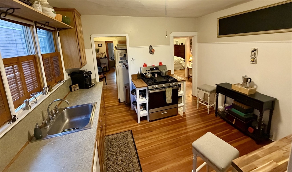 West Somerville Gem — Modern Comfort Meets Classic New England Charm2 Bedrooms + 2 Modern Offices | Private Yard Oasis | Off-Street Parking | $3,100 mo Come home to a quiet tree-lined neighborhood in Wonderful West Somerville, where timeless craftsmanship meets thoughtful modern updates.This spacious 1,200 sq. ft. main-level apartment expands to nearly 1,700 sq. ft. with two stylish finished basement offices, laundry, and abundant storage—ideal for remote work or creative projects.Highlights:Large 2-bedroom plus 2 bonus offices — perfect for work-from-home livingModernized yet charming with hardwood floors, natural gumwood trim, and built-in dining detailsChef’s kitchen with new 6-burner range with griddle, microwave/air-fryer combo, quiet Bosch dishwasher, butcher block coffee bar, and full pantryUpdated bathroom featuring a deep clawfoot tub and showerPrivate outdoor oasis — a large deck, lawn, garden, and BBQ patio under a majestic old oak tree with natural stone se