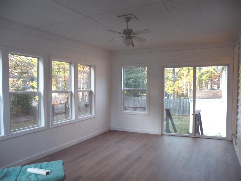 Beautifully appointed and updated oversized split, hardwood throughout first floor, eat in kitchen that has been completely updated. Dinning room has a slider to a beautiful 3 season sun room and deck off of the sunroom. Oversized 2 car garage with access to the house and backyard. 3 generous sized bedrooms on the first floor with ample closet space. Main bath has been completely updated. Downstairs on the ground level is a beautiful media room with fire place, Laundry room with washer and dryer as well as storage. There is a large room that could be used as a bedroom or home office, has windows and closet. second bathroom also on the ground floor with walk in stand up shower. Large fenced in backyard
