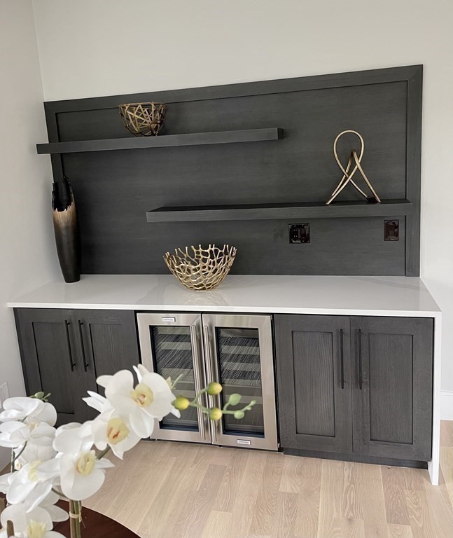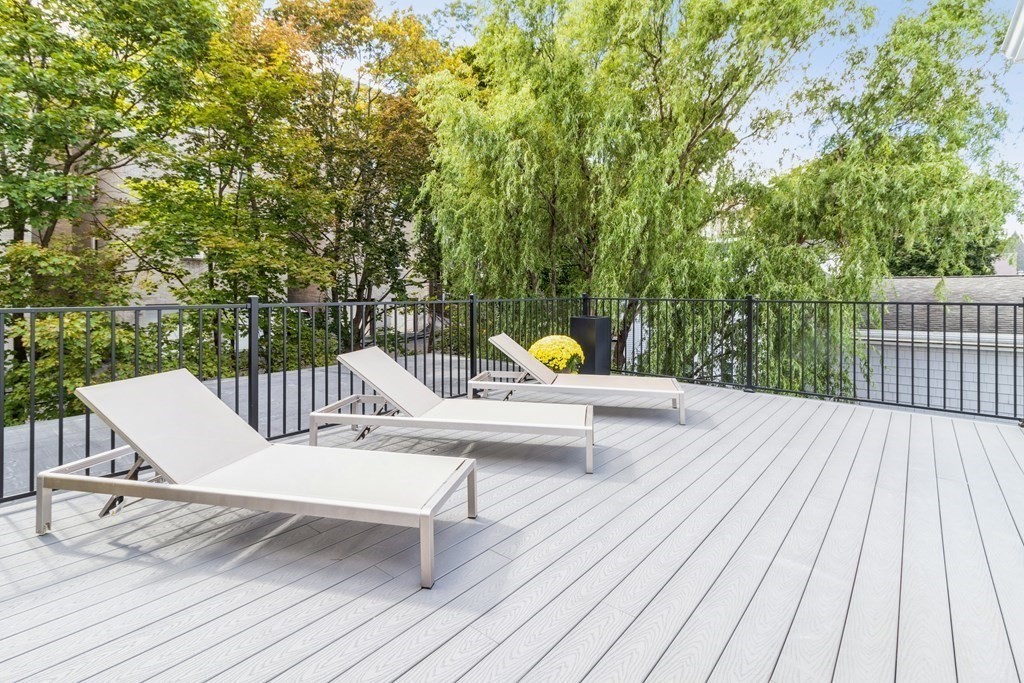 New Construction Sophisticated Contemporary Home totally transformed in 2022 by a prestigious luxury developer. Meticulously crafted for modern living with 5500+ sf including two additional suites with kitchenettes & private entrances designed as In-Law/Au-Pair apartment & home office. Spectacular living room with 6' linear gas fireplace complimented by a 8' wide granite wall. Extraordinary chef's kitchen with quartz countertops & massive 10 foot center island. Wolf/Subzero/Thermador appliances, 2 dishwashers, 2 sinks, professional hood, micro lift, dual wine fridge & breakfast sitting area. Dramatic primary bedroom suite w marble fireplace, walk-in closet, balcony & spa-like bath w glass enclosed shower & soaking tub. Top floor offers yoga/studio/office. Sprawling roof deck w breathtaking views of downtown Boston & Prudential. Four parking (2 garage), smart home technology & surround sound complete this exceptional residence. Avail February 1