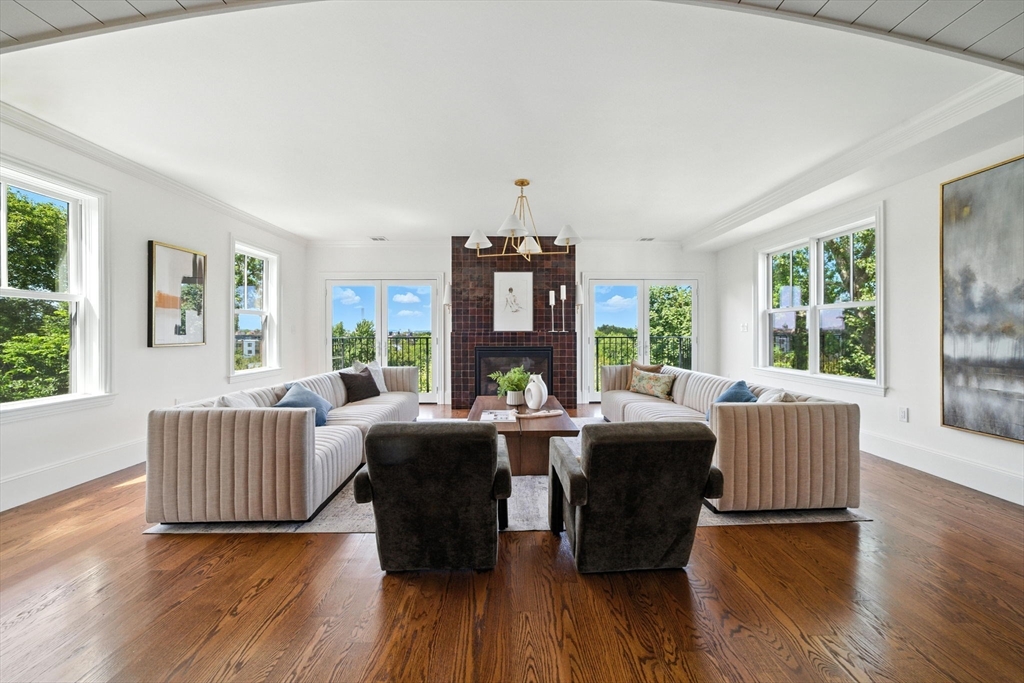 This stunning, professionally designed 4-bedroom, 3.5-bath condo in Brookline’s sought-after Coolidge Corner offers exceptional design and luxury. The main level includes a large chef’s kitchen opening to a nearly 500 sq ft living room, formal dining room with built-in buffet, two spacious bedrooms with shared bath, a guest suite with attached bath, powder room, laundry room, and den/office. Upstairs features a family room with wet bar leading to an unparalleled roof deck with panoramic views, plus a primary suite with walk-in closet, bonus sitting room or second closet, and a spa-like bath with effervescent tub and custom-tiled shower. Outdoor spaces include a private yard, rear balcony, and roof deck with gas and water hookups. Additional perks include a laundry room with sink and storage, mudroom with direct access to two garage parking spaces, and bonus storage. Minimum 4 month lease. Apartment can be fully furnished (semi custom to tenant) for an extra $5,000 per month.