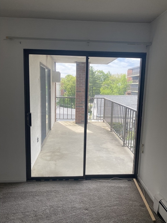 Very nice, spacious 1 bedroom, 1 bath corner unit is located Arlington Center. Heat and hot water included!! Unit features wall to wall throughout, large sliders onto the balcony, Fully applianced kitchen, living room/dining room combination and full tiled bath. Balcony off of living room and bedroom. There is coin-operated laundry located on every floor and additional storage at no extra cost. 1 car off street parking is included. Treetop view of Spy Pond and the Boston Skyline. The building is located directly on Mass Ave. bus at door to Harvard, Porter, Alewife, Burlington Mall. One block to Minuteman Bike Path and Spy Pond, as well as all of the fine restaurants and shops in Arlington Center, combined make this the perfect location!!