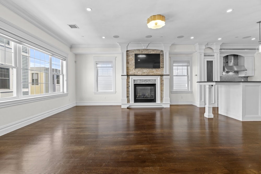 This private rooftop deck that feels like your own retreat above the city, complete with a fire pit, hot tub, and sweeping 360-degree skyline views will blow you away! There is nothing cookie-cutter about this 1,838 sq ft penthouse duplex that seamlessly blends character, comfort, and South Boston charm. This 3 bedroom, 2 bath residence offers a rare combination of luxury living, generous space, and exceptional outdoor space. The main level showcases an open-concept design with a natural flow between the kitchen, dining, and living areas, all centered around a cozy gas fireplace. Refined finishes and thoughtful details add to the inviting yet elevated atmosphere. Both bedrooms are located on this floor, including a primary suite with a spacious walk-in closet, a spa-like 5-piece bath, and a private deck. Upstairs, versatility meets space with a third bedroom or second living area, ideal for entertaining or unwinding.This home has 2 garage parking spaces and extra storage