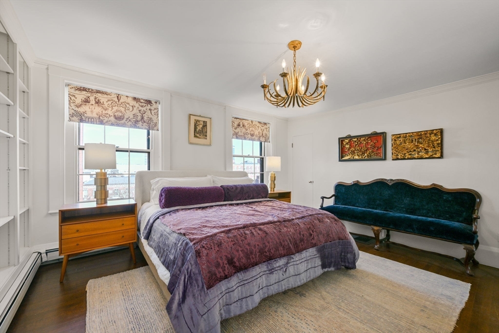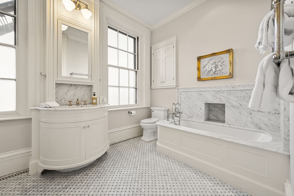 Set on coveted Mount Vernon St in Beacon Hill, this fully furnished and equipped single-family rental offers an extraordinary historic residence designed by architect Edward Shaw for prominent merchant Adam W. Thaxter, Jr. in 1837. The home spans multiple levels and blends refined historic elegance with modern comfort. The first floor features a gracious foyer, elegant living and formal dining rooms, a chef’s kitchen with eat-in area and direct access to a private garden patio. The second floor offers a media room with adjacent music room and full bath. The third floor is dedicated to the primary suite with sitting room and full bath. The fourth floor includes two large bedrooms, a coffee bar, full bath, laundry, and gym. The fifth floor features one bedroom, full bath, sitting room, and bonus room. The top level showcases a rare octagonal observatory with sweeping city views. Elevator services the 1st through 4th floors. Utilities and housekeeping included, pets welcome with approval.