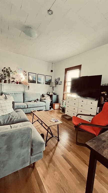 Charming two-bedroom, one-bath apartment featuring a modernized kitchen equipped with a dishwasher. Both bedrooms are well-proportioned and offer generous closet space. The bright living room is flooded with abundant natural light through multiple windows. An in-unit washer and dryer add everyday convenience. Enjoy a private rear deck along with access to a shared yard. Ideally located near parks, shops, and public transportation, including the Green Line MBTA.