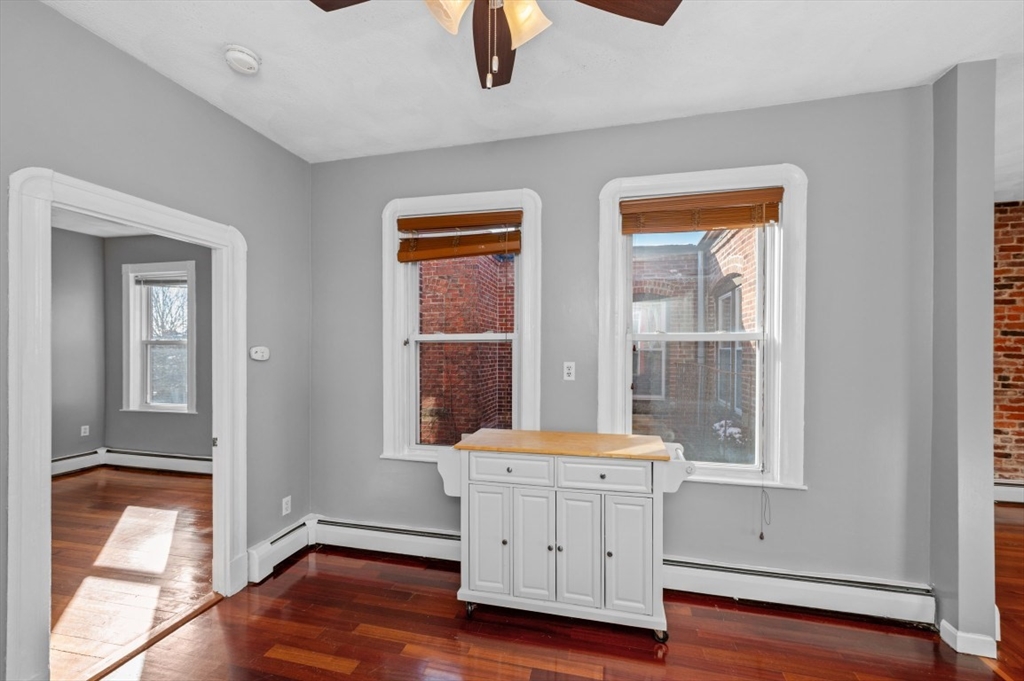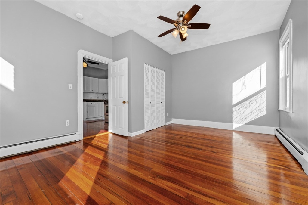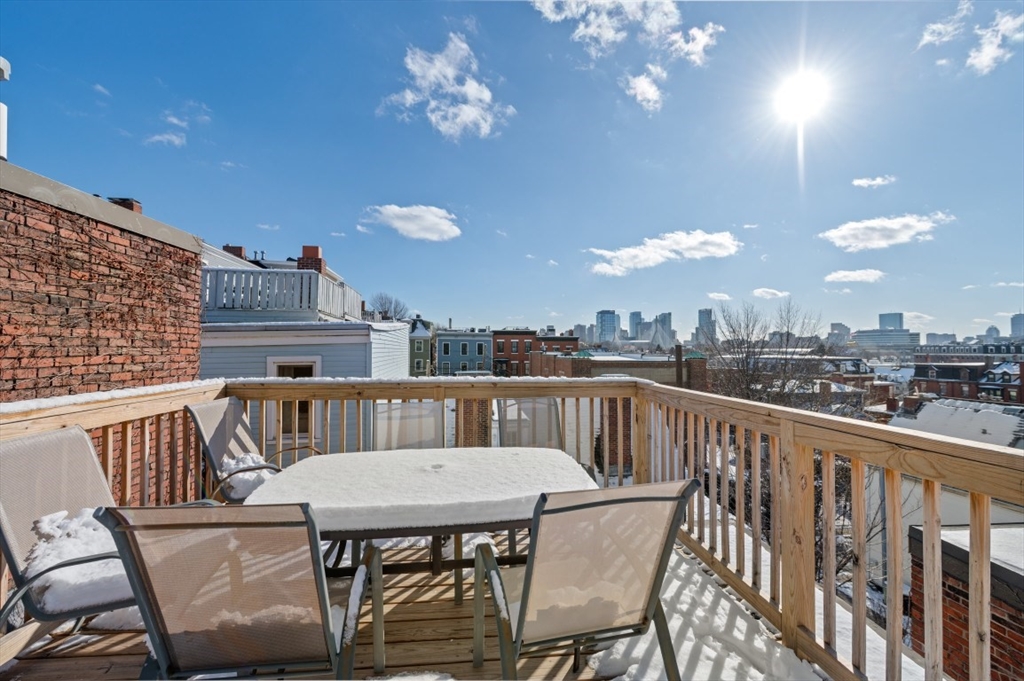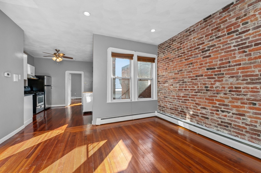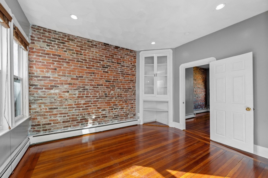 Avail in Now! Sunny penthouse 1+/2BD w/modern kitchen & bathroom, excellent closet space + roof deck. This floor-through features tall ceilings, hardwood floors, exposed brick walls, 2 large bedrooms, walk-in closet/office and flexible layout. The kitchen, w/granite counters, subway tile backsplash & stainless steel appliances, opens to an elegant room w/ exposed brick accent wall, currently used as the dining room. In its current configuration the front room is set as a bedroom (can fit a king bed) but can also accommodate large living room set. 10' 9" x 8' space off this room is now used as walk-in closet but can be an office. Rear bedroom (16'2'' x 12'5'') w/large closet is currently set up as a living room/office but can accommodate king-size bed. The roof deck has panoramic views of Boston & Zakim bridge & is shared w/just 2 other units. Laundry is free & in the building. Enjoy a central location near Orange Line, 92/93 Bus, RT 93, Whole Foods & the restaurants of 02129.