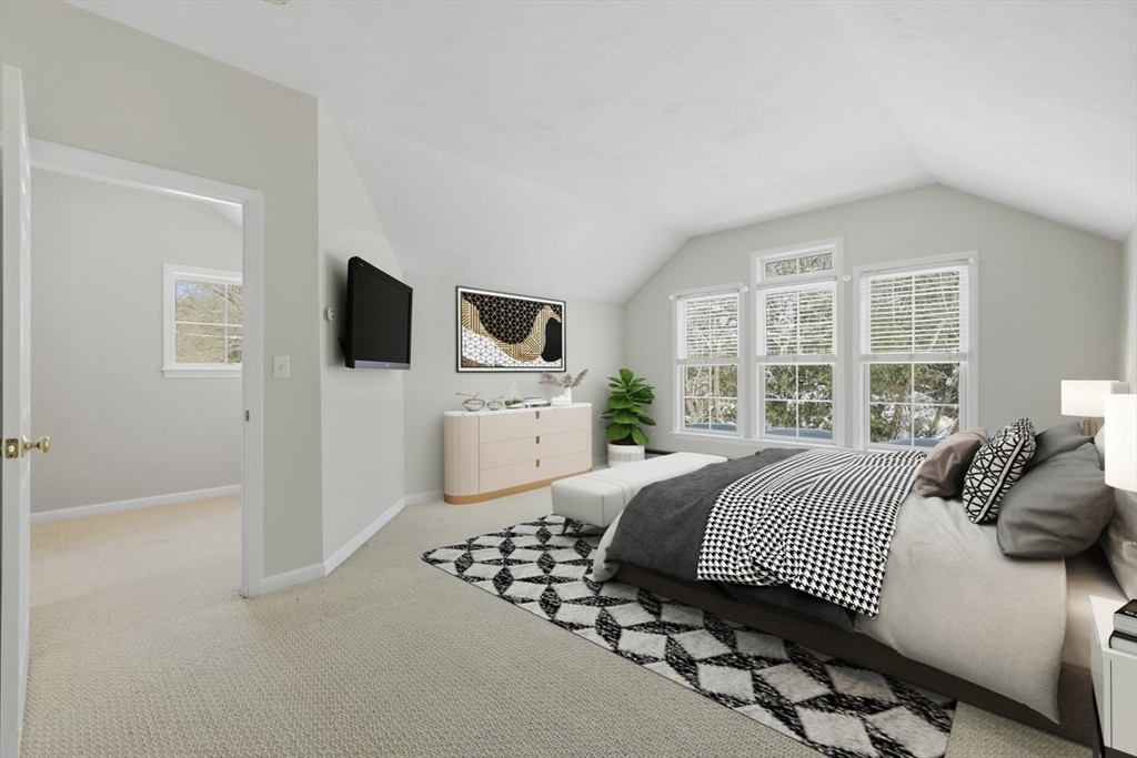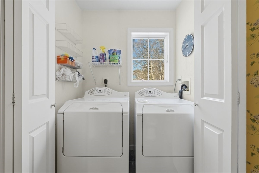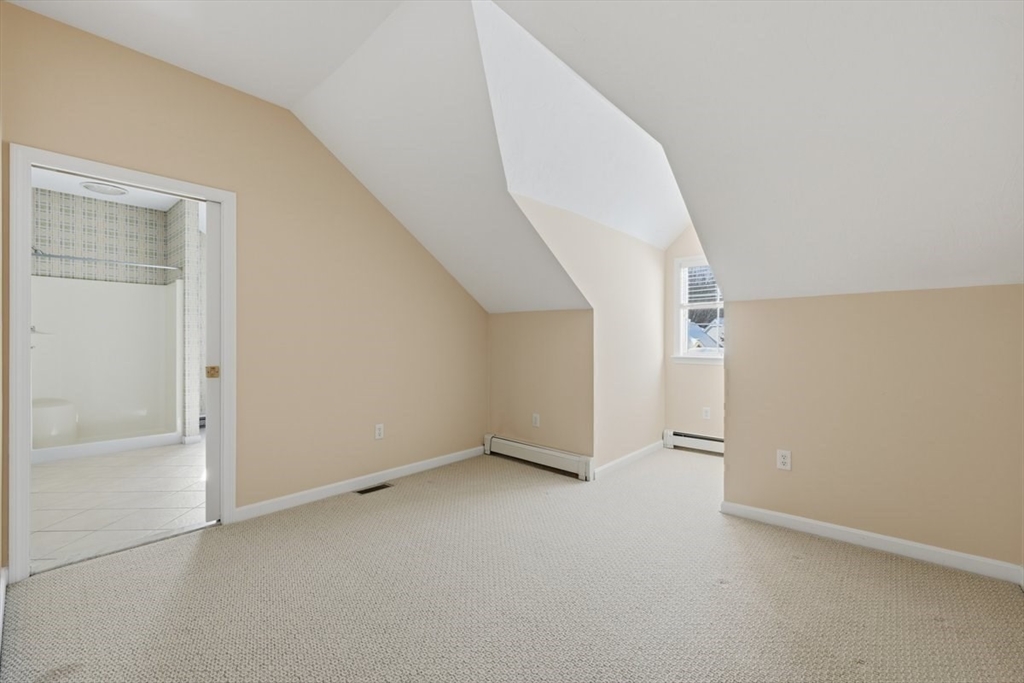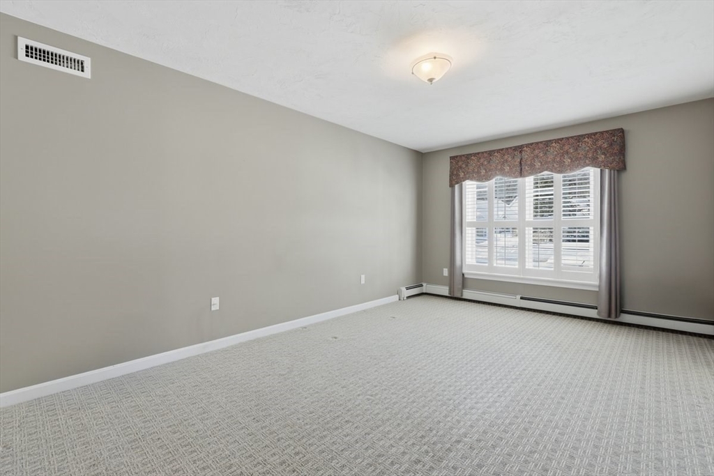 Welcome to this elegant end-unit townhouse located in The Elms, Hanover’s distinguished 55+ community. The inviting entry opens to a bright, open-concept layout featuring a dramatic staircase and a spacious great room that seamlessly connects to the dining and living areas, anchored by a tasteful fireplace. Designed for ease and comfort, the home offers first-floor living with a primary suite, full bath, and conveniently located laundry. Notable features include soaring ceilings, hardwood flooring, and a versatile room well suited for a home office/den, or quiet sitting area. The second level provides a generous loft, a well-appointed second bedroom, a full bath, and an oversized walk-in closet. Step outside to a private rear deck overlooking wooded surroundings, offering a tranquil and secluded setting.