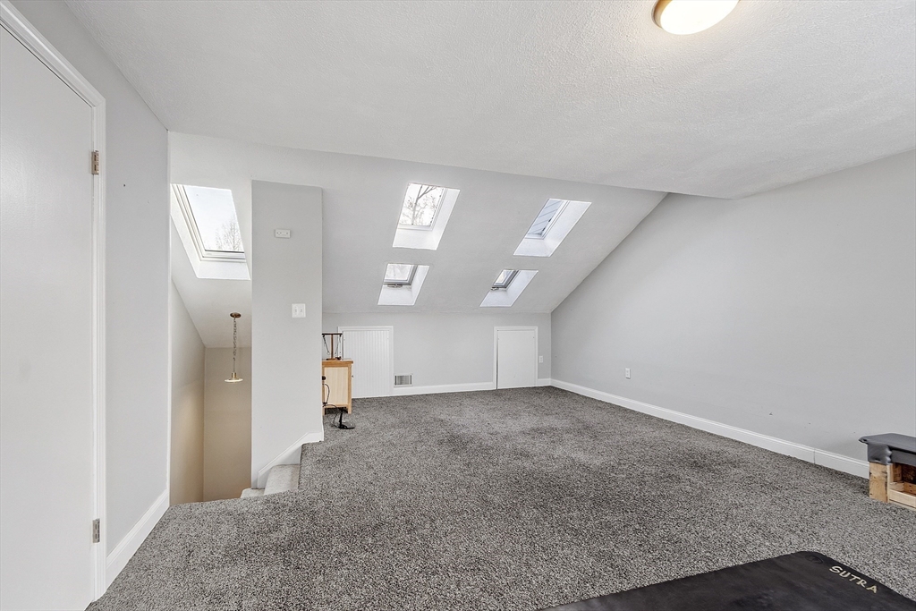Terrific, well maintained 4 level condo at Farmland Estates! Inviting living room, spacious kitchen & dining room on the first floor. Dining opens to French doors/deck. Primary bedroom w/Juliet balcony, perfect for morning coffee! This unit has so many improvements, it's difficult to list them all. Living room w/new hardwood & tile flooring, kitchen w/significant upgrades: newer appliances, backsplash, countertop & sink/faucet replaced in 2023. Downstairs bath completely renovated in 2024, upstairs bath fully renovated in 2017. Windows replaced in living room, kitchen, downstairs bath & second bedroom. Both bedrooms had recessed lighting installed w/dimmers. New carpeting in loft w/skylights. Much more! Parking? How about three spaces: outside the front door, under the deck & in garage! Low condo fee of $275. Convenient location w/shopping, UMass Lowell, Tsongas Arena, LeLacheur Field, downtown Lowell all nearby.