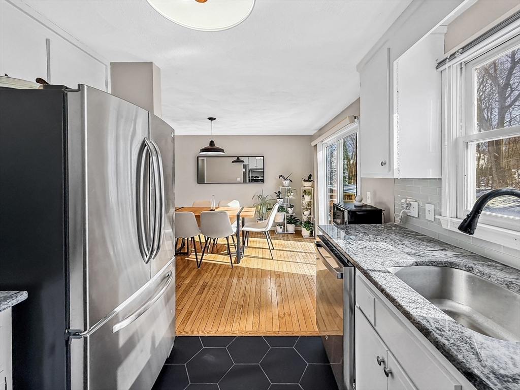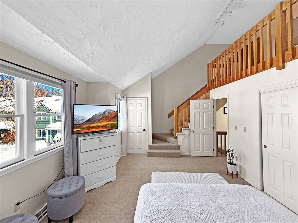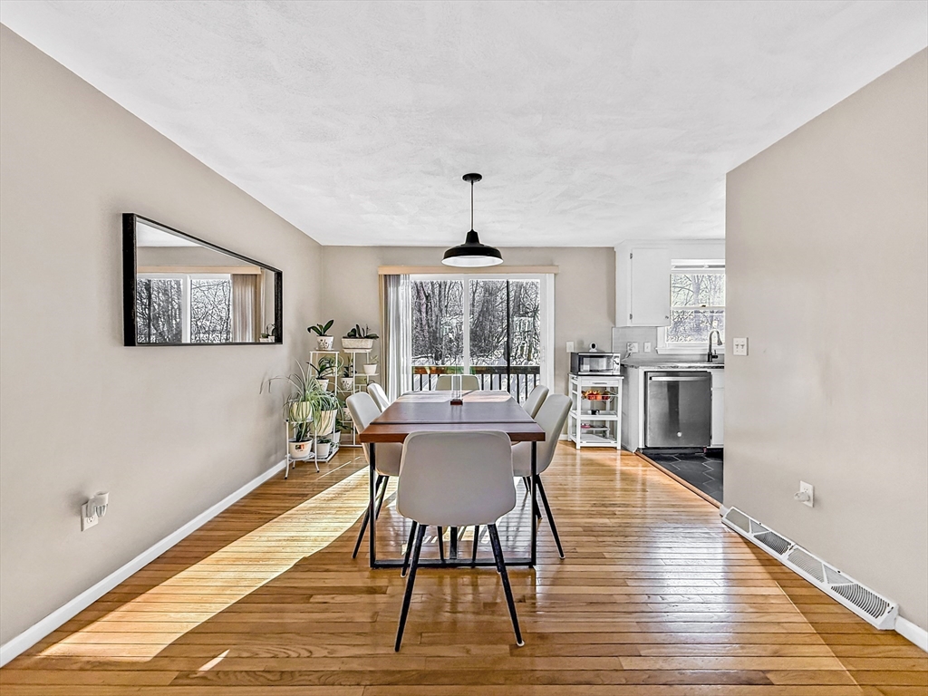 Move right into this beautifully updated townhome in sought-after Wentworth Estates, tucked away from busy roads yet moments to Rt 113, the commuter rail to Boston, shopping, dining, parks and UMass Lowell. The sun-filled main level features hardwood flooring, an open living/dining layout, a renovated kitchen with stylish finishes and sliders to a private deck for morning coffee or evening unwinding, plus a half bath. Upstairs offers two spacious bedrooms with newer carpeting, an updated full bath and a primary suite with cathedral ceilings and a skylight-topped loft, perfect for a home office or retreat with extra storage. The lower level provides a mudroom entry, laundry/storage, interior access to a one-car garage and 2 off-street parking spaces plus plenty of guest parking. Professionally managed grounds, snow removal and pet-friendly rules make everyday living effortless. A rare blend of updates, space and convenience, don’t miss this one!