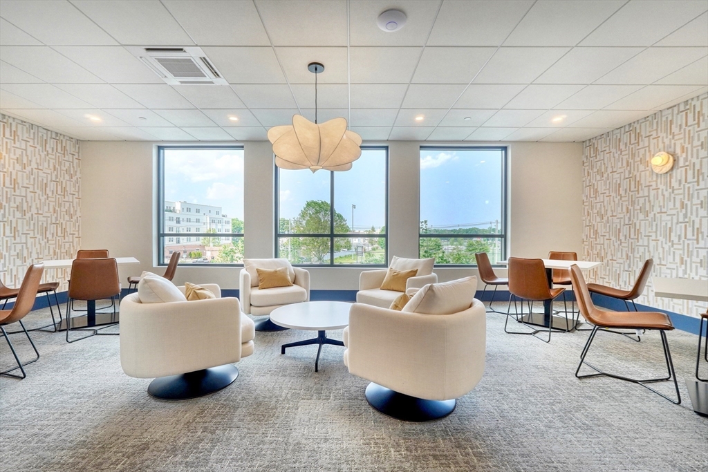 Resort-style living at Wakefield's BRAND NEW "Wrenly" condominiums, an elevator building. Location is ideal, just around the corner from the commuter rail stop, and within easy reach of bustling downtown shops & restaurants, as well as the ever popular Lake Quannapowitt! This 2BR, 2BA sun-filled unit has flexible living space, and a lovely west facing balcony for those lazy summer evenings. State of the art kitchen w/ quartz counters is open to large living and dining spaces. Great closets, in-unit laundry, wonderful fixtures, and engineered hardwood flooring. Love the convenience of the indoor garage space, AND covered second parking spot! Work from home? There are great common spaces throughout the building, a well equipped gym, and a huge common patio for good weather relaxing and entertaining, and bar-b-ques. Comfortable, refined living awaits!