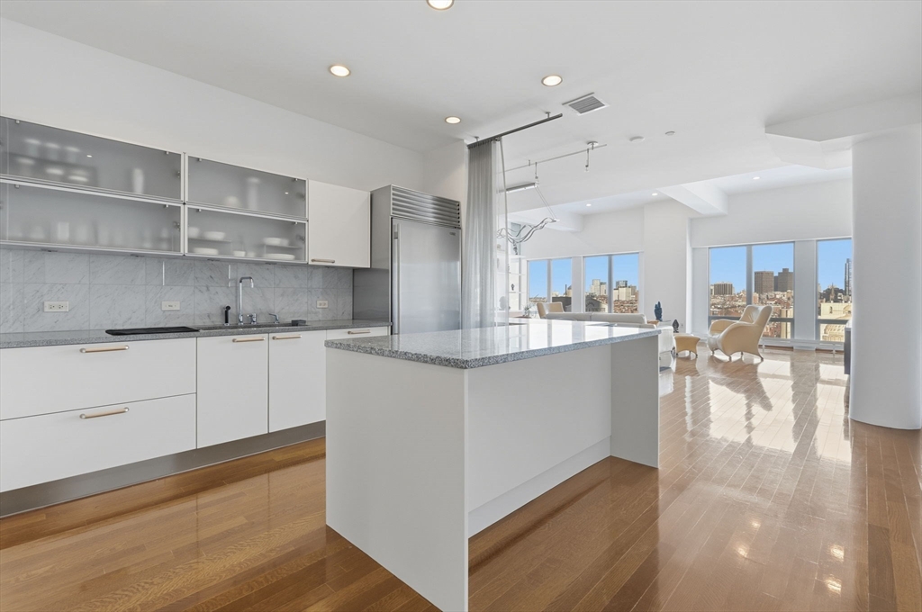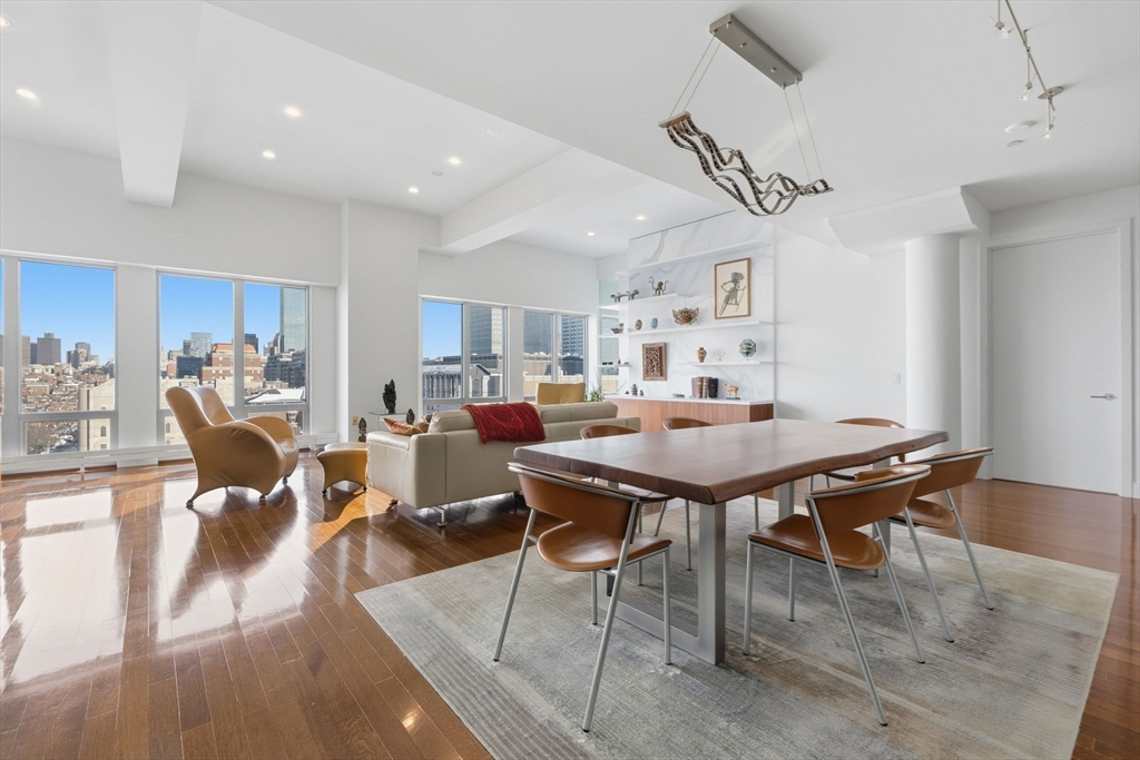 Experience contemporary living in 360 Newbury, an award-winning concierge building designed by Frank Gehry in the heart of Back Bay. Two upper-floor units have been combined to create this spacious four bedroom residence with walls of floor to ceiling windows, offering amazing Back Bay and Boston Skyline Views. The heart of the home is the stunning and loft-like living and dining room, adjacent to both the chef's kitchen and a more intimate conversation area. Surrounding the open-concept living spaces are four bedrooms with abundant built-out closet storage, and four luxurious full baths. Additional features include custom lighting, electric window shades and full-sized in unit laundry. Mere steps from the vibrant shopping and dining experiences of Newbury Street. Parking available for purchase or rental nearby.