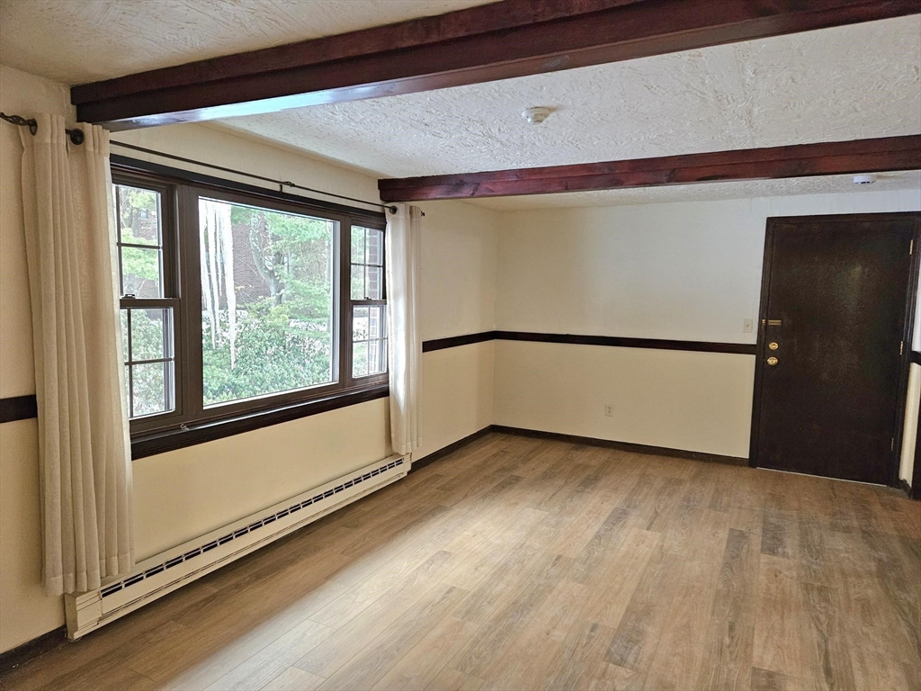 Spacious 2 bedroom top floor corner unit. Eat-in kitchen with white cabinetry, ceiling fan and ceramic tile floor. Large living room and separate dining room with new luxury vinyl flooring. Extra large master bedroom with double closet; good sized second bedroom also with good closet space. New vanity installed in bathroom. Neutral decor throughout. Wall unit AC; Extra storage space in attic. Common laundry in building. Xfinity and Verizon are both available to building. No smoking permitted; No pets permitted. Ample parking. Preference is for lease to run either until end of August 2026 or end of August 2027. First and Last Months' Rents plus Security Deposit required at signing of lease. Credit and background check processed through mysmartmove, ($50 cost to each tenant). References required. Tenant is responsible for cost of electricity...Provider is Littleton Electric Company which historically offers lower rates. Water is connected to Littleton Water Supply.