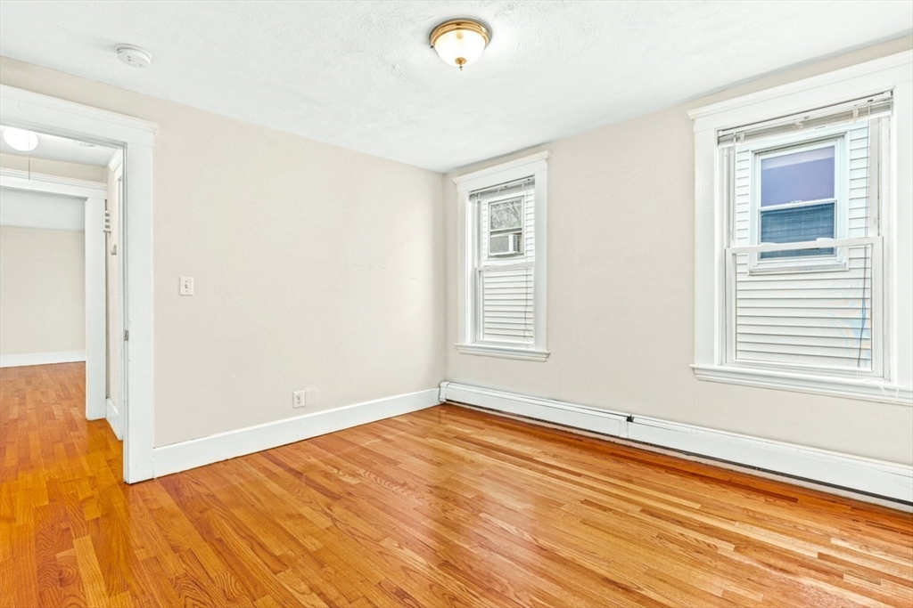 Southwest-facing, 2-bedroom third floor apartment with private rear balcony. A commuter's dream, this property is located one block from the Wyoming Hill Commuter Rail Stop on the Haverhill Line and is in proximity to downtown Melrose and multiple bus stops.This home features a spacious living room/dining room area, eat-in kitchen with walk-in pantry off the kitchen, and gleaming hardwood oak flooring throughout. Common coin-op laundry is available in the basement. Overnight permit parking is offered by the City of Melrose for $120 per year with vehicle registration showing that it is garaged in Melrose.