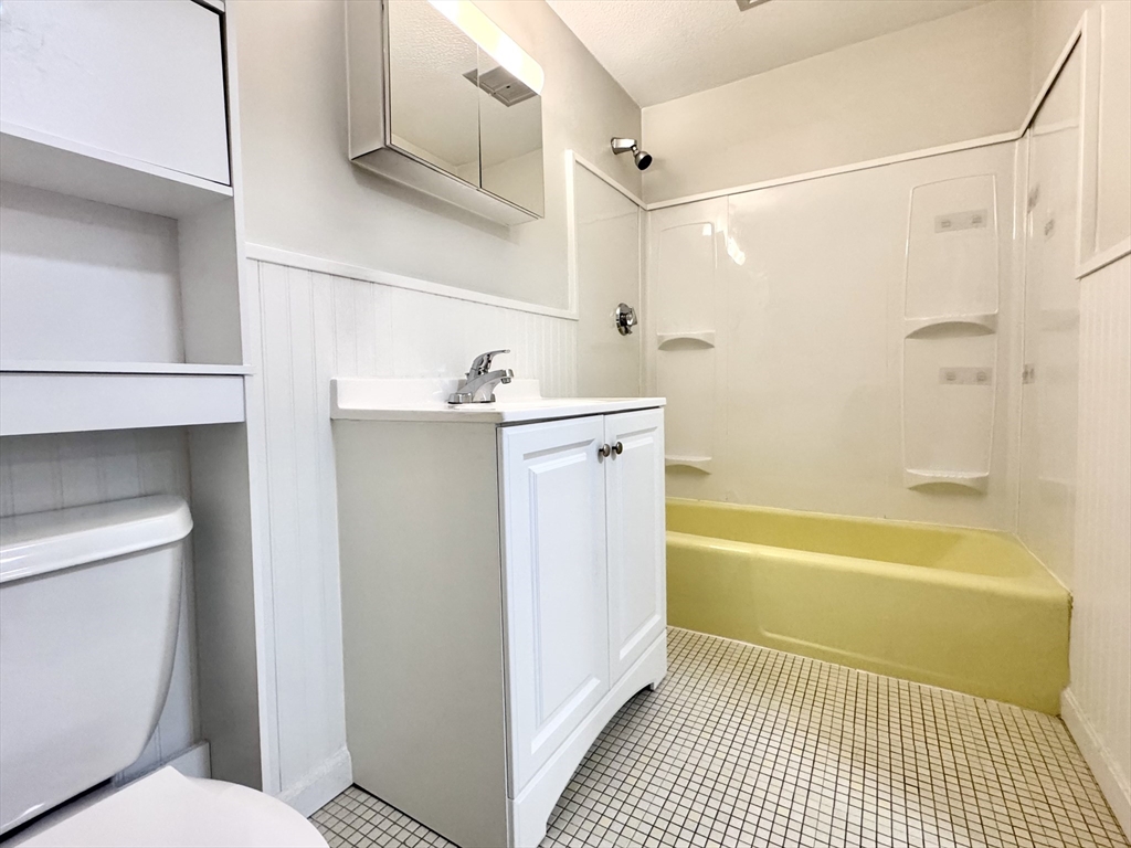 Welcome to your sunny, top floor 1-bedroom apartment nestled in Waltham just steps from Moody Street! As you enter the unit, you are met with an updated kitchen that features all white appliances, updated countertops and updated flooring throughout. The living room features a cut out looking into the kitchen, updated flooring and an AC unit. Plenty of room for your furniture which allows you to personalize the space to suit your lifestyle. Great sized bedroom with more updated flooring, a good sized closet and overhead lighting. Tiled bathroom with shower and ample closets for all your storage needs. At this location, you'll enjoy easy access to an array of local amenities, including shops, restaurants, and more! With nearby public transportation options and major highways just minutes away, commuting to Boston or exploring the surrounding area is a breeze. Additional features include common card/mobile-pay laundry, one assigned parking spot, and pets allowed for an additional fee.