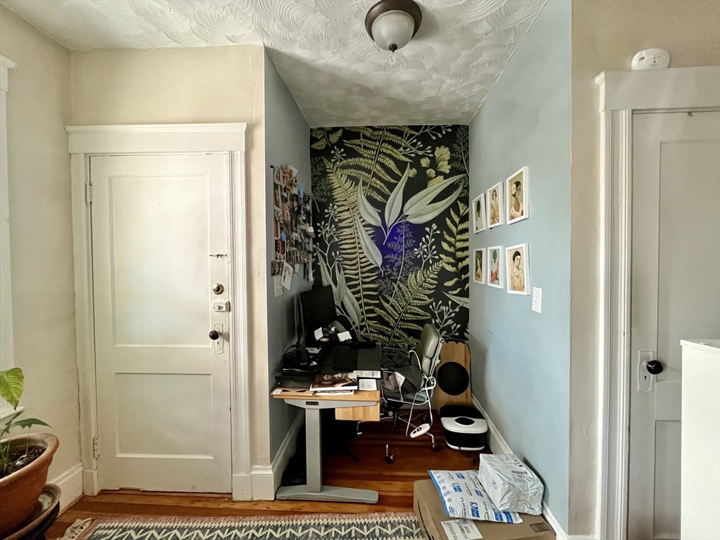 Oversized, well maintained, 2 bed plus office area, classic 1st floor Arlington 2 family with updated kitchen, granite counters, laundry hookups in basement, 1 garage and 1 driveway parking. Conveniently located across the street from Minuteman Bikeway.