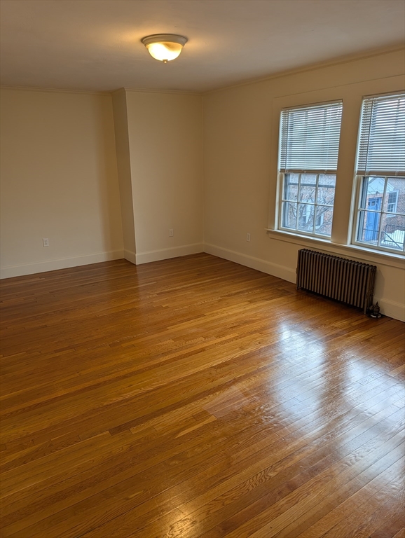 Large one bedroom apartmentBedroom, living room, eat-in-kitchen and full bathHardwood floors though out with tile bathStorage in basementCoin operated washer and dryer in basementrear porchone assigned parking spot - 1 additional spot available for extra chargewalking distance to Medford Square, Tuft University and Green Line Extension (T)Heat and Hot water included.Cats OK - additional charge