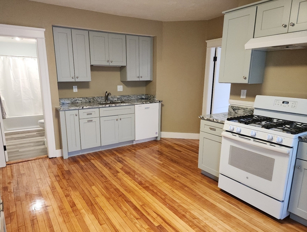 Completely gutted and renovated 1st floor unit! Beautiful real wood floors, modern kitchen, primary bedroom has it's own full bathroom and walk-in closet, plus 2nd full bathroom in hall for other residents and guests. One off-street parking space, landscaping and snow removal are all included in the rent. Tenant pays gas for heat,hot water and cooking, electricity, cable and renters insurance. Landlord requires first, last, one month security and one year paid renters insurance all in advance of move-in. Also required, good credit history and verifiable qualifying income. NO PETS and NO SMOKERS will be accepted. There is a $47 per adult credit report fee due with application. Inquire today to get the opportunity to see this gem!