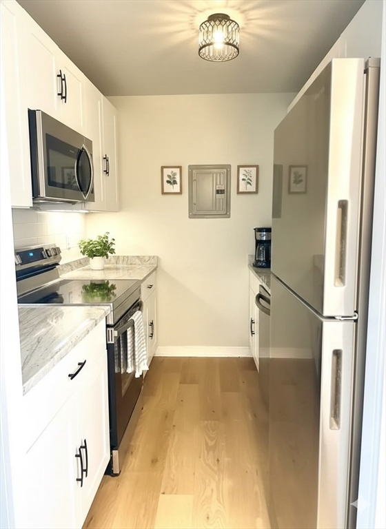 Renovated one bedroom unit at the Balmoral Condominium! It's a modern unit in a building with classic beauty. Spacious living room with high ceiling, and laminate floors throughout. Modern bathroom & kitchen with granite counter tops & all stainless-steel appliances. There's a deeded parking spot, visitor parking, and a common laundry area. Located just minutes from downtown Andover, with easy access to shops, restaurants, parks, the commuter rail and the I-495 and I-93 motorways, this property offers both comfort and convenience. **** No cats| dogs only****.