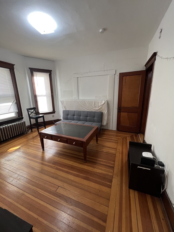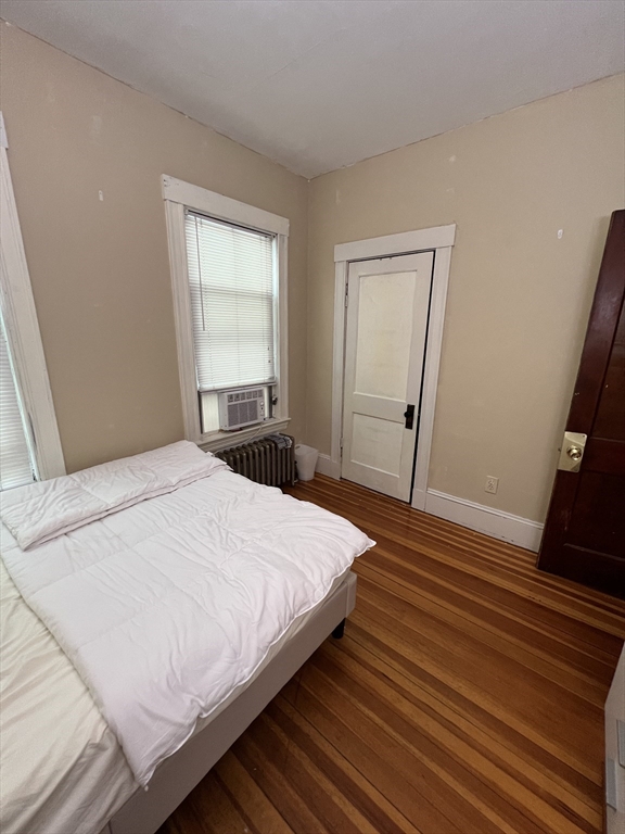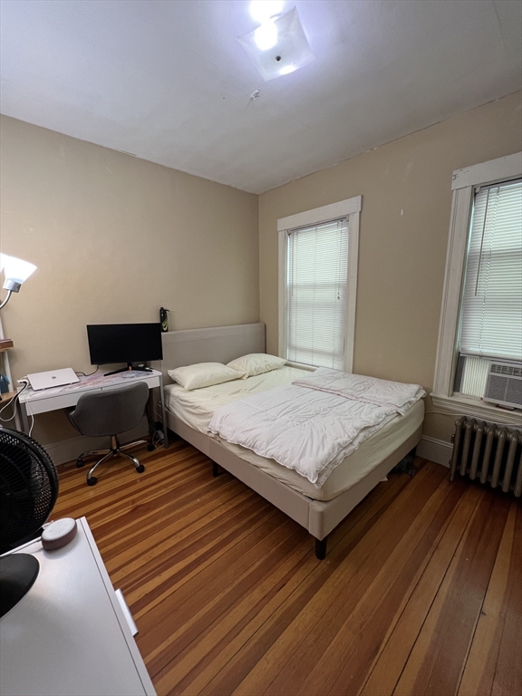 Davis Square. Closest train = Davis Square (Red Line T). 3 bed/1 bath (first floor). Eat-in-kitchen. Separate living room. Hardwood floors. Great sized bedrooms. Coin-op laundry machines in basement. Street parking with City permit. Off-street parking available for rent.