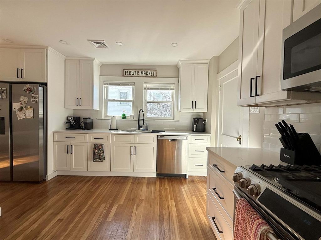 AVAILABLE SEPT 1. Newly renovated spacious & bright top floor 4-Bedroom + Office, 2-Bath duplex in Ashmont/Adams Village. Hardwood floors throughout. Central AC. In unit laundry. Well-designed layout, spanning two floors. The open kitchen features a gas stove, dishwasher, & ample cabinetry - which opens up to your formal dining room. Just off the sun filled living room is a bonus office. Enjoy your cup of coffee on your private deck off the kitchen & enjoy the warm summer days in the generously sized shared back yard. Driveway parking for up to 3-4 cars included, with easy street parking for guests. Enjoy the centralized location, with numerous restaurants, cafes, and grocery stores just minutes away. With easy access to the Red T Line and I-93, commuting is a breeze.Tenants are responsible for gas and electricity. Inquire for a video tour!