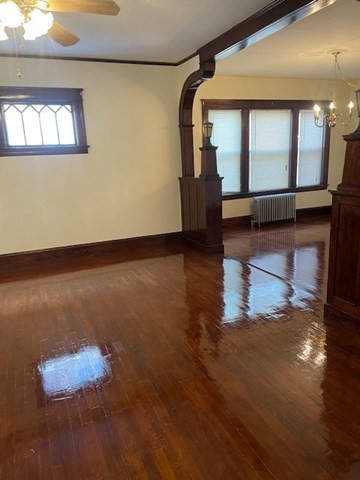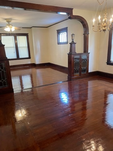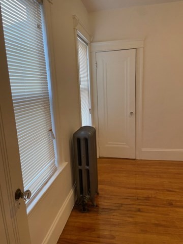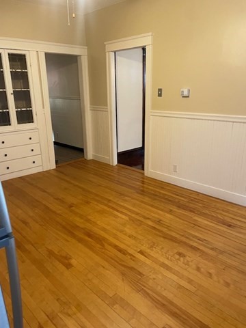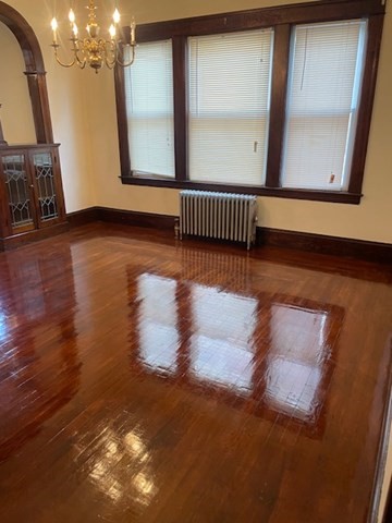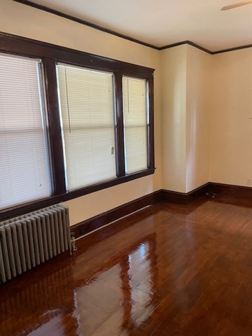 Meticulously maintained 3-bedroom, 1-bath first-floor apartment on a quiet dead-end street. Features gleaming hardwoods, natural wood accents, vinyl windows, low-maintenance siding, and recent insulation for added efficiency. Heated by gas. The spacious kitchen offers ample cabinetry, pantry space, fridge included, stove/oven, and washer & dryer hookups. Enjoy the covered front porch and off-street parking for two tandem spots. Pet-free, smoke-free property in a convenient commuter location with quick access to I-290, public transportation, and hospitals. Tenant responsible for snow removal to parking area, front and rear stairs, and sidewalk in front of unit.