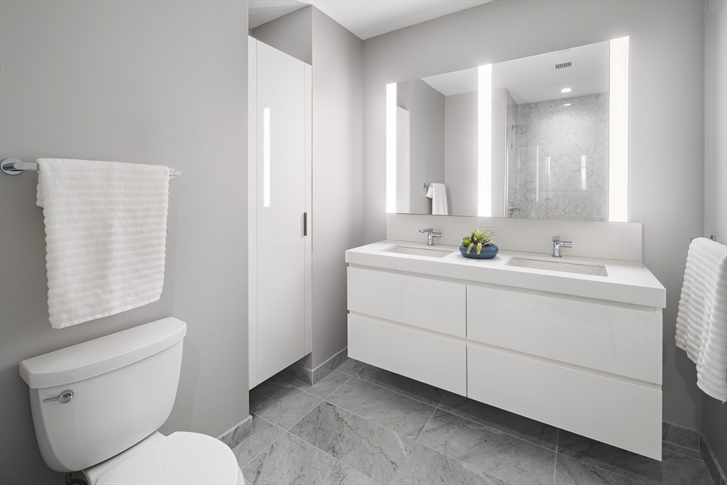 Experience luxury living on the 21st floor of the Echelon in Boston’s vibrant Seaport District. This spacious 2 bed, 2.5 bath corner residence is highlighted by floor-to-ceiling windows and high ceilings. Sun-drenched with a southern exposure, the home is filled with natural light all day. The unit features oak-plank floors, a distinctive floor plan, open-concept living, and a dining area that comfortably seats 8. The kitchen offers custom Italian cabinetry and Thermador appliances. Two generously sized bedrooms with en-suite baths, plus an additional half bath for guests. Enjoy a private balcony off the living room and a 2nd balcony off the primary suite. Includes two garage valet parking spaces and 24/7 concierge services. Amenities include indoor & outdoor pools, a state-of-the-art fitness center with a basketball court, yoga and Pilates studios, and a golf simulator. The Club Level features a fireplace lounge, library, and private dining room. Come see the best of Seaport living!