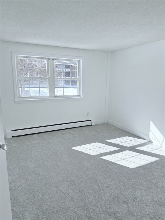 Ready to move in one bedroom condo unit located on second floor in much desired Hilltop Gardens! Condo unit includes updates in fully applianced kitchen, new Bosch dishwasher & vinyl kitchen flooring. Dining area with vinyl flooring flows into the spacious & bright family room! Primary bedroom w/ large double closet & updated bathroom. This condo has been painted throughout with an updated designer color palette which is enhanced by brand new plush carpeting. Laundry is located in basement & has a deeded parking spot & additional parking for guests. Rent also includes heat, hot water, trash & snow removal, ground maintenance inground pool. A/C unit in family room. Fabulous location! Close to T- Station, shopping, golf course, medical facility, highway access, House of Worship, Private & Public School.
