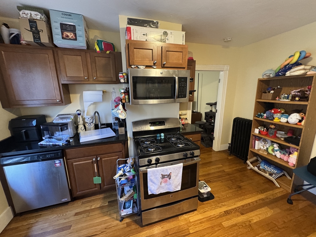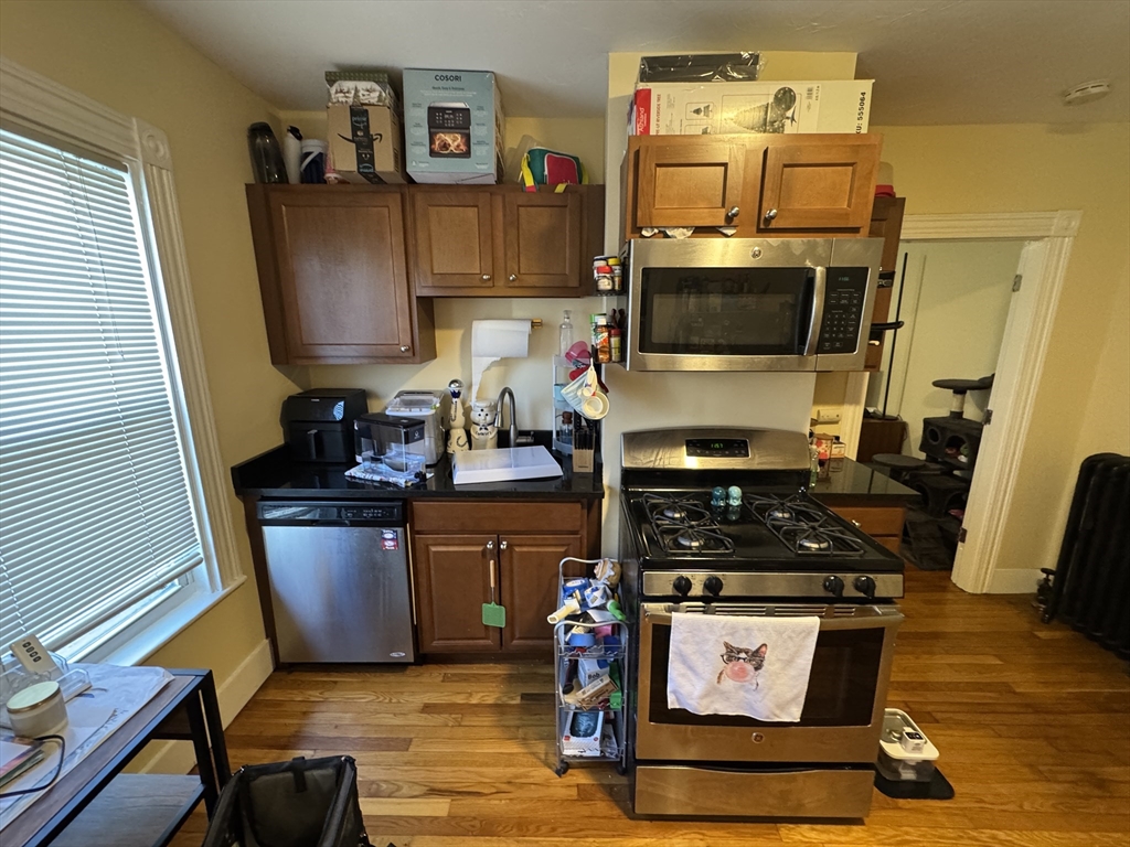 Porter Square. Closest train = Porter Square (Red Line). Studio/1 bath (first floor). LL pays for heat, hot water, gas, and electricity. Updated & modern kitchen/bath (granite, stainless steel appliances, newer cabinets). Hardwood floors. Coin-op laundry on first floor. Street parking with City permit. Off-street parking available for rent.