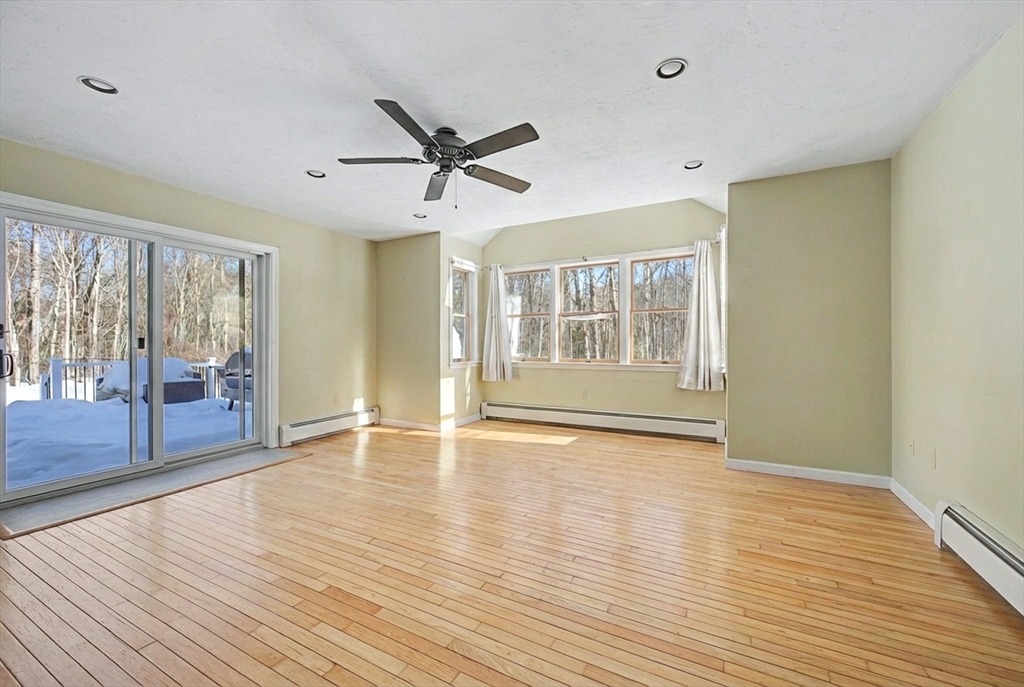 Charming 3-bedroom, 2.5-bath antique farmhouse rental set on a picturesque wooded lot in the heart of historic Woodville in Hopkinton. This unique home blends timeless character with modern comfort. The kitchen opens to a spacious eat-in area with a slider leading to a large composite deck overlooking the fenced backyard, perfect for relaxing or entertaining. The bright living room features beautiful hardwood floors and an open layout. Half bath with washer and dryer. Upstairs offers 3 bedrooms, an updated full bath, and an additional room ideal for a home office or flex space. The huge primary suite features vaulted ceilings, skylights, and a private ensuite bath. The kitchen/primary suite addition was completed in the 90s. Additional highlights include Lead Safe Certificate, natural gas heat and cooktop, newer boiler, and central air. Pets allowed, no smoking. 12-month lease. First, last, and security required. Group Showing Saturday 3/14
