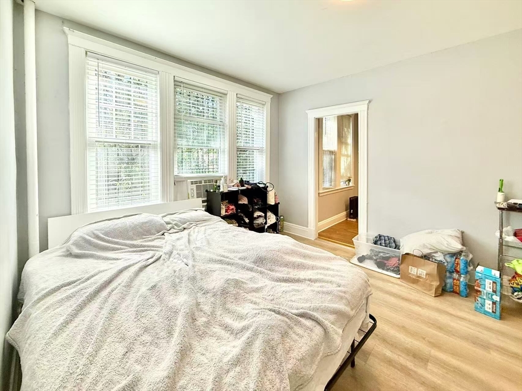 This well-located studio sits just steps to public transportation, the B Green Line, parks, shops, and dining—ideal for commuters. Second-floor unit overlooks a quiet rear garden and offers a bright, airy layout. Features include an entry foyer with large coat closet, open living space accommodating a queen bed, living area, and home office, plus an additional closet. High ceilings, updated floors, newer windows, and great natural light throughout. Full bath with window and linen closet. Spacious eat-in kitchen. Pet-friendly association with low condo fees.