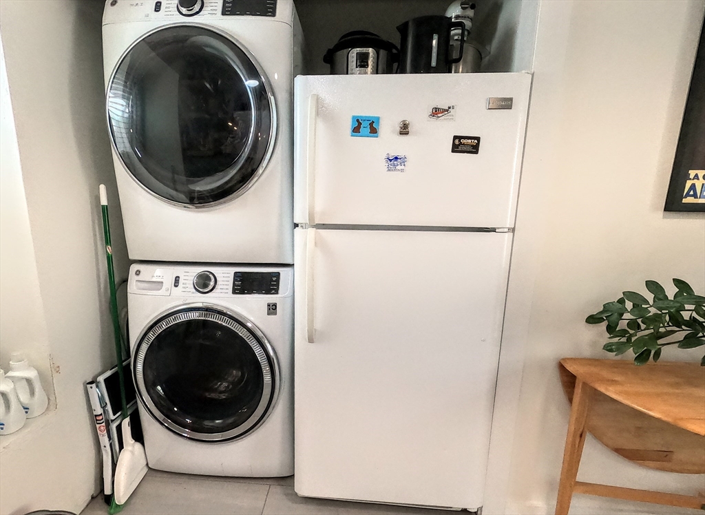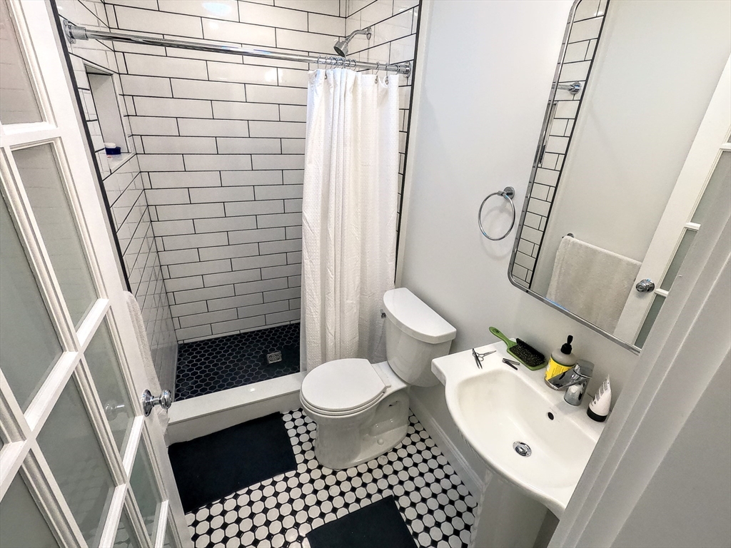 JAMAICA PLAIN:Video Tour: https://youtu.be/Zn2Ic4LUkCg Gorgeous 3-bed/2-bath apartment, completely renovated. HEAT & HOT WATER INCLUDED! Light and bright top floor with a spacious living room with custom built ins for books and large flat screen. Both bathrooms are brand new, with ceramic tile floors, tiled showers, and modern medicine cabinets. The main bedroom offers windows on both corners and a good closet, the second bedroom has a double closet, and the third can fit a queen on platform. The eat-in kitchen boasts ceramic floors, all-new appliances (5-burner gas stove, refrigerator, dishwasher, disposal), a deep stainless steel sink, beautiful butcher block counters, new cabinets with open shelving, and a metal organizer for pots and pans plus full-size washer/dryer and private back entrance. One off-street parking space. Short walk to Stonybrook T, Ula Cafe, Chilicates, Samuel Adams Brewery, and Franklin Park Zoo