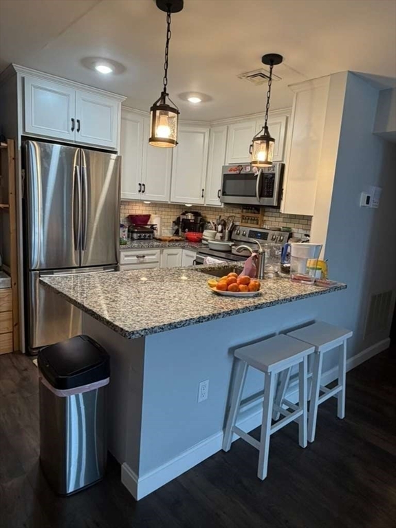 Available to move in April 1st! Welcome to the Farms at Indian Pond, a highly desired and well-maintained condo complex full of amenities including nature ponds and trails, an in-ground pool, lounge area, playground, tennis court, and more! Just minutes to shopping, restaurants, and major highways (Rt. 44, 138, 140, and 24). This open concept condo offers 2 beds and 2 baths with a large loft space and EXTRA BONUS ROOM on the second floor.The eat-in kitchen is fully renovated with white cabinets, granite countertops, subway tile backsplash, breakfast bar and stainless steel appliances. The living room includes stunning cathedral ceilings, an electric fireplace, laminate flooring and a picturesque bay window that fills the room with natural light. Off the living room is egress to the balcony where you can enjoy your own private outdoor space. Some other great features of this home include in-unit first floor laundry and Central A/C. Sorry but NO PETS!