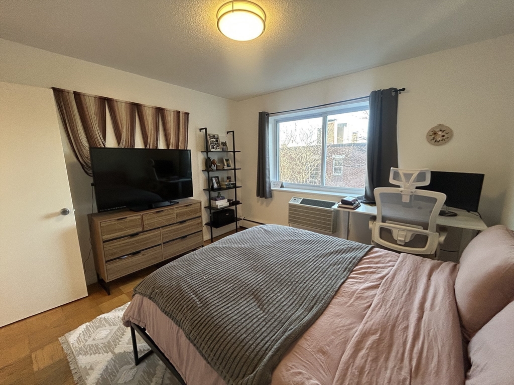 5th floor two bedroom in ideal Mid-Cambridge location between Harvard & MIT. Beautiful tree-lined street but close to everything! Just blocks from Red Line at Central, Whole Foods, Inman SQ, Harvard, MIT and so much more. Well-maintained condo with dishwasher, parquet wood floors, and built-in air conditioning. Big bedrooms great for roommates, with room for desk in each bedroom. Professionally managed condo building with elevator. Large windows offer lots of light and leafy views! Extra storage included, parking available for additional rent if desired. June 1 start; First, Last, Security due at signing.