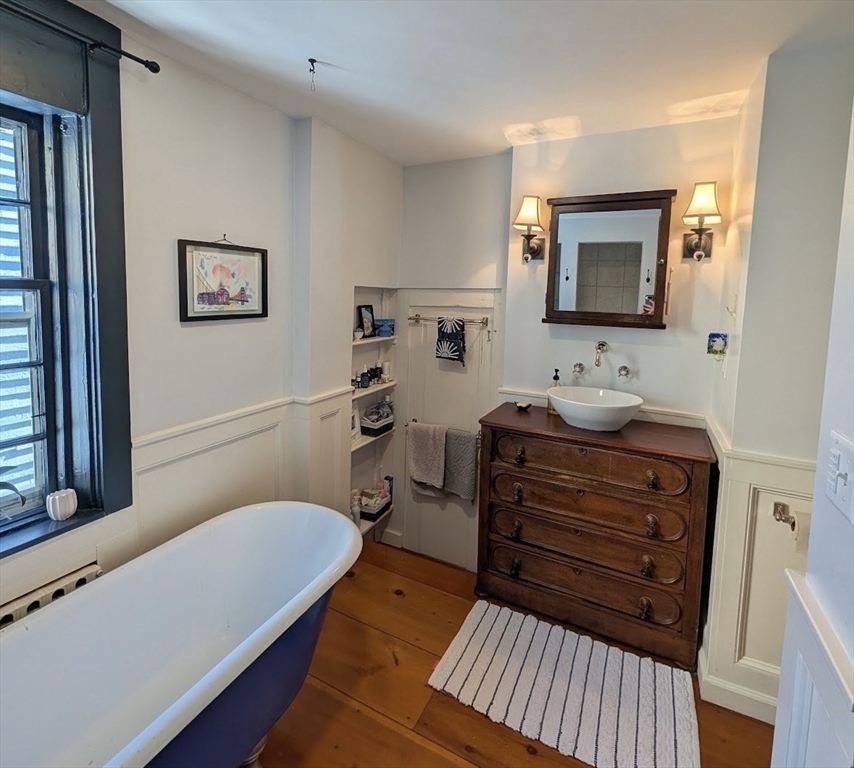 Charming historic home for rent in the heart of Old Town Marblehead, available July 1, 2026–August 1, 2027. Fantastic location within close distance to Washington Street shops and restaurants, Fort Sewall, Redd’s Pond, Crocker Park, and local beaches. The main house offers 3 bedrooms and 2.5 baths, including a primary suite with two walk-in closets and ensuite bath, plus second-floor laundry. Newly renovated kitchen with induction stove and gas stove for supplemental heat.Detached two-car garage with automated door and finished space above featuring an open room, loft, and full bath—ideal for a home office, studio, or guest space. Enjoy outdoor entertaining with dining area, sectional seating, fireplace, grill, and outdoor shower. Mudroom with storage in conveniently located at the entry to the home.
