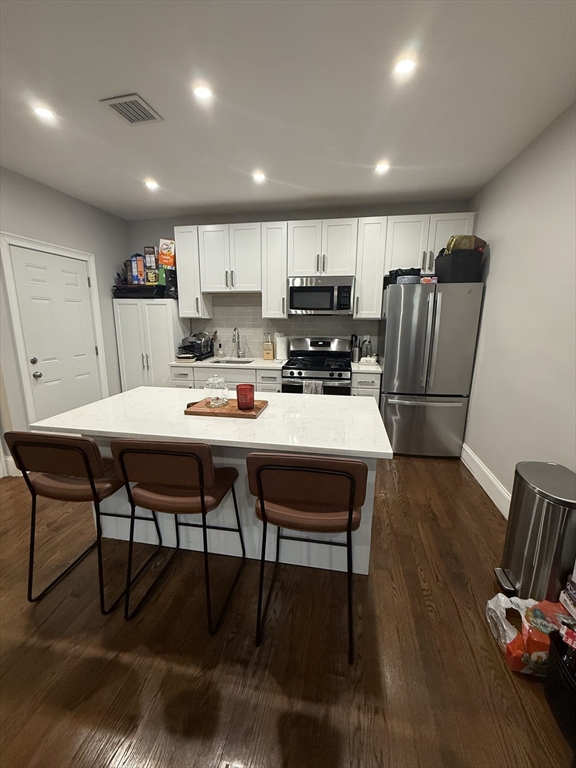 This recently renovated apartment is huge! The open concept floor plan features a spacious island and plenty of new white shaker cabinets with white quartz countertops along with stainless steel appliances and hardwood floors throughout, except in the 2 full bathrooms where white tile floors and walk in showers featuring glass doors! With laundry and central air conditioning in the unit, and great deck, what else do you need!? The location is ideal .04 mile to JFK redline station or I-93 to make commuting a breeze! Close proximity to shopping, restaurants, beaches all the nightlife Boston has to offer!